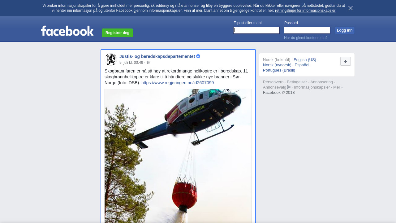 Skogbrannfaren er nå så høy at rekordmange helikoptre er i beredskap. 11 skogbrannhelikoptre er klare til å håndtere og slukke nye branner i Sør-Norge (foto: DSB). https://www.regjeringen.no/id2607099