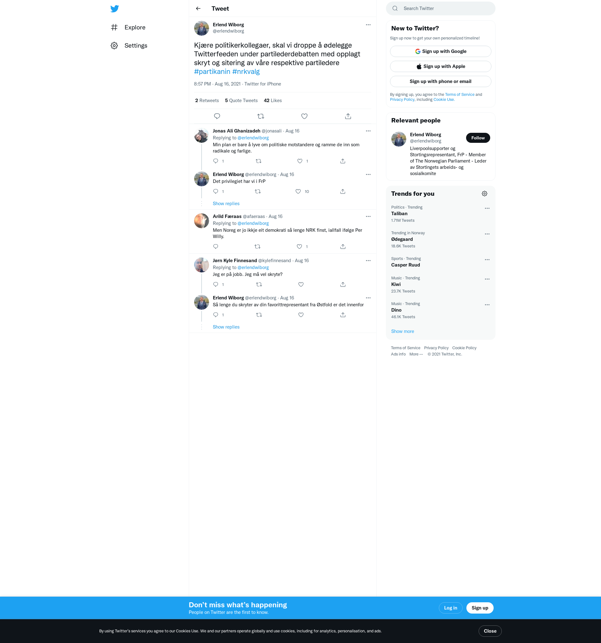 Kjære politikerkollegaer, skal vi droppe å ødelegge Twitterfeeden under partilederdebatten med opplagt skryt og sitering av våre respektive partiledere #partikanin #nrkvalg