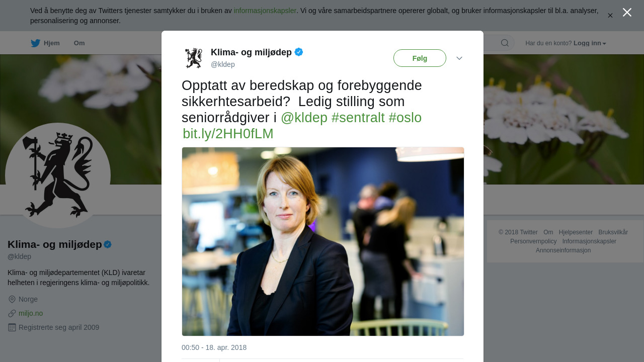 Stillingstittel: Seniorrådgiver innen beredskap og forebyggende sikkerhet (151183), Arbeidsgiver: Klima- og miljødepartementet, Søknadsfrist: 29. april 2018