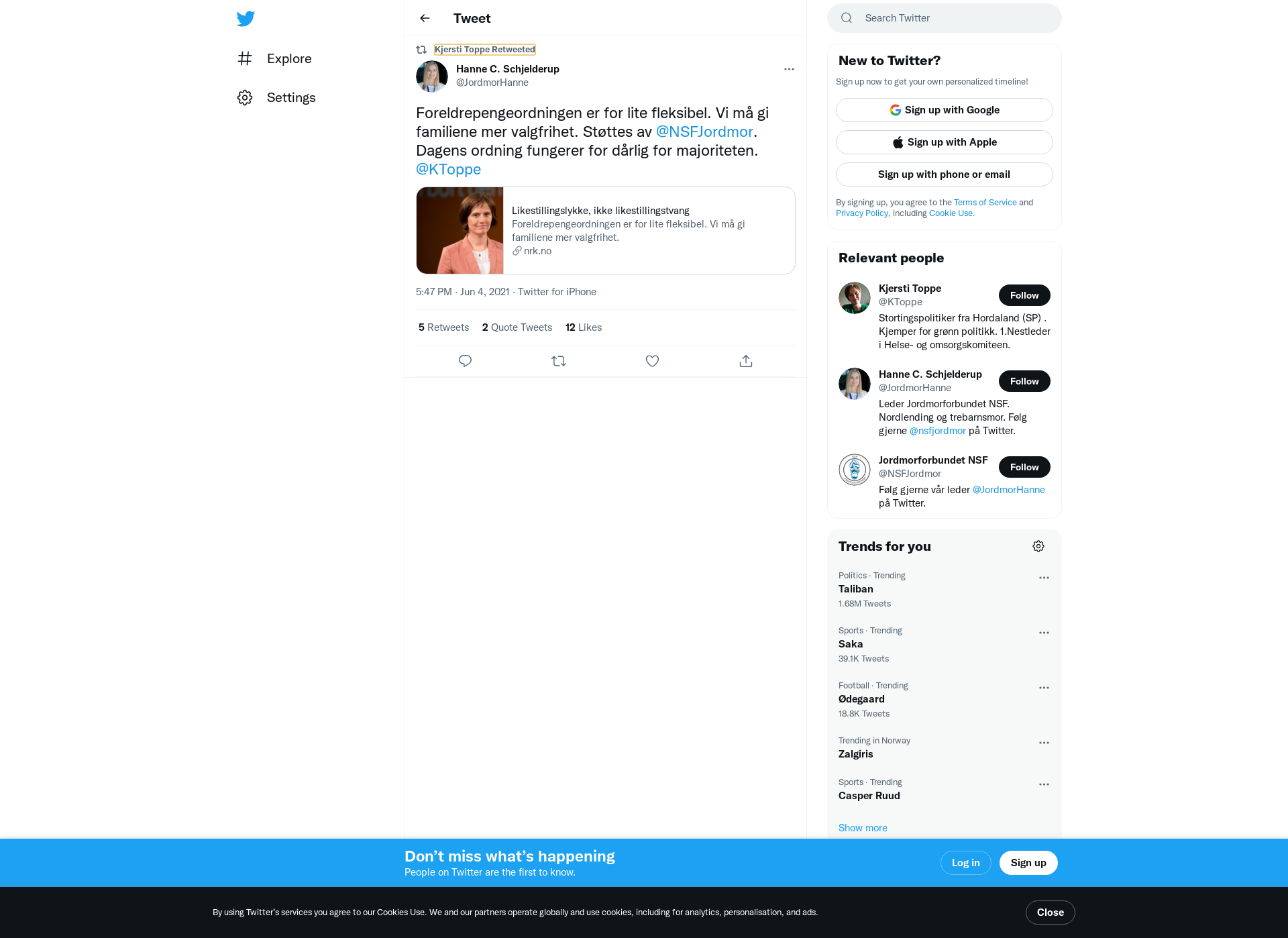 RT @JordmorHanne: Foreldrepengeordningen er for lite fleksibel. Vi må gi familiene mer valgfrihet. Støttes av @NSFJordmor. Dagens ordning fungerer for dårlig for majoriteten. @KToppe https://t.co/XkMG1O3qY5