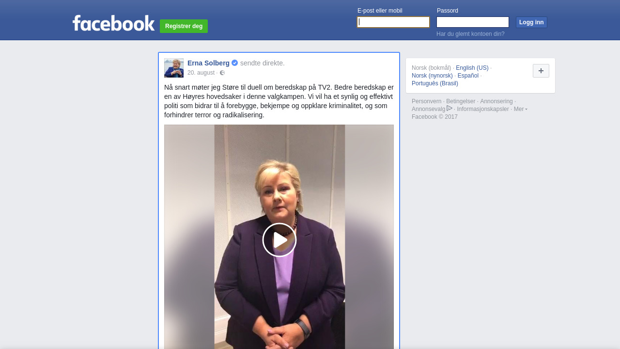 Nå snart møter jeg Støre til duell om beredskap på TV2. Bedre beredskap er en av Høyres hovedsaker i denne valgkampen. Vi vil ha et synlig og effektivt politi som bidrar til å forebygge, bekjempe og oppklare kriminalitet, og som forhindrer terror og radikalisering.