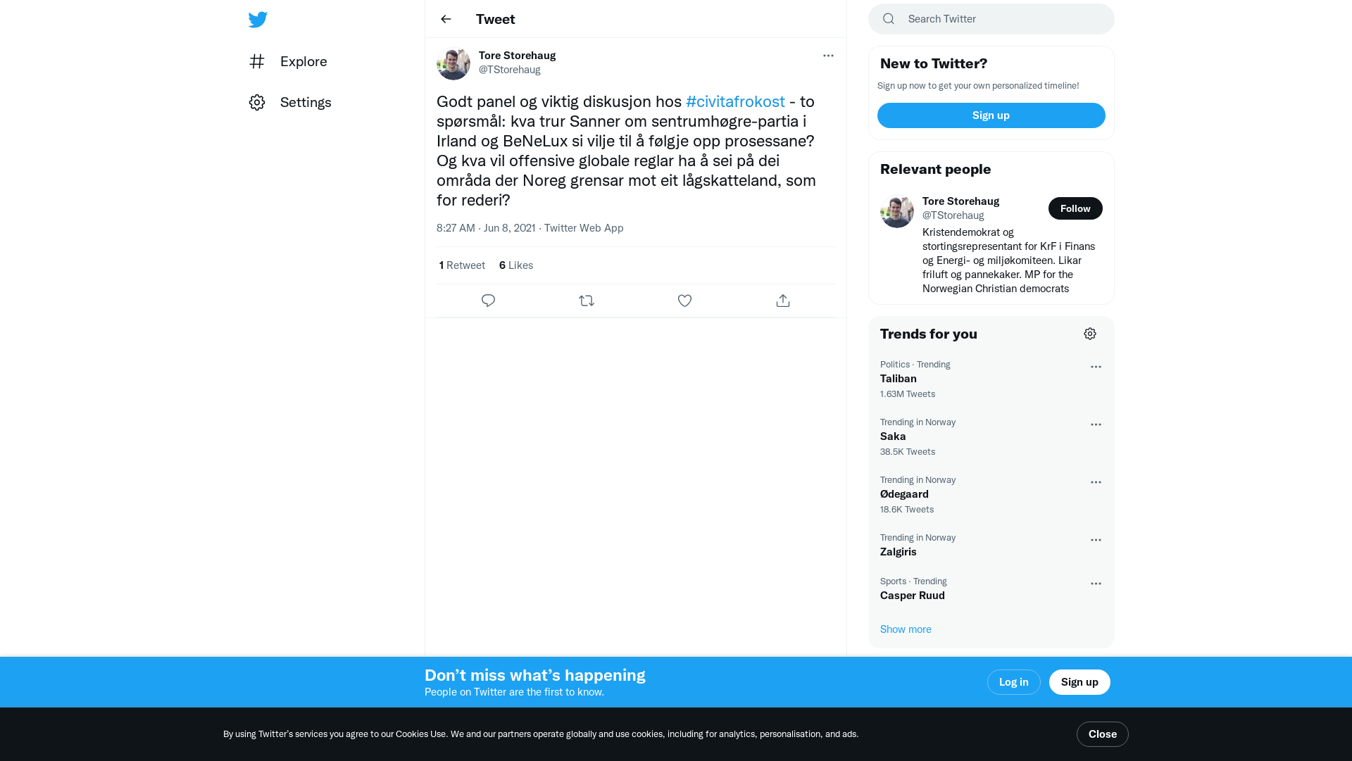 Godt panel og viktig diskusjon hos #civitafrokost - to spørsmål: kva trur Sanner om sentrumhøgre-partia i Irland og BeNeLux si vilje til å følgje opp prosessane? Og kva vil offensive globale reglar ha å sei på dei områda der Noreg grensar mot eit lågskatteland, som for rederi?