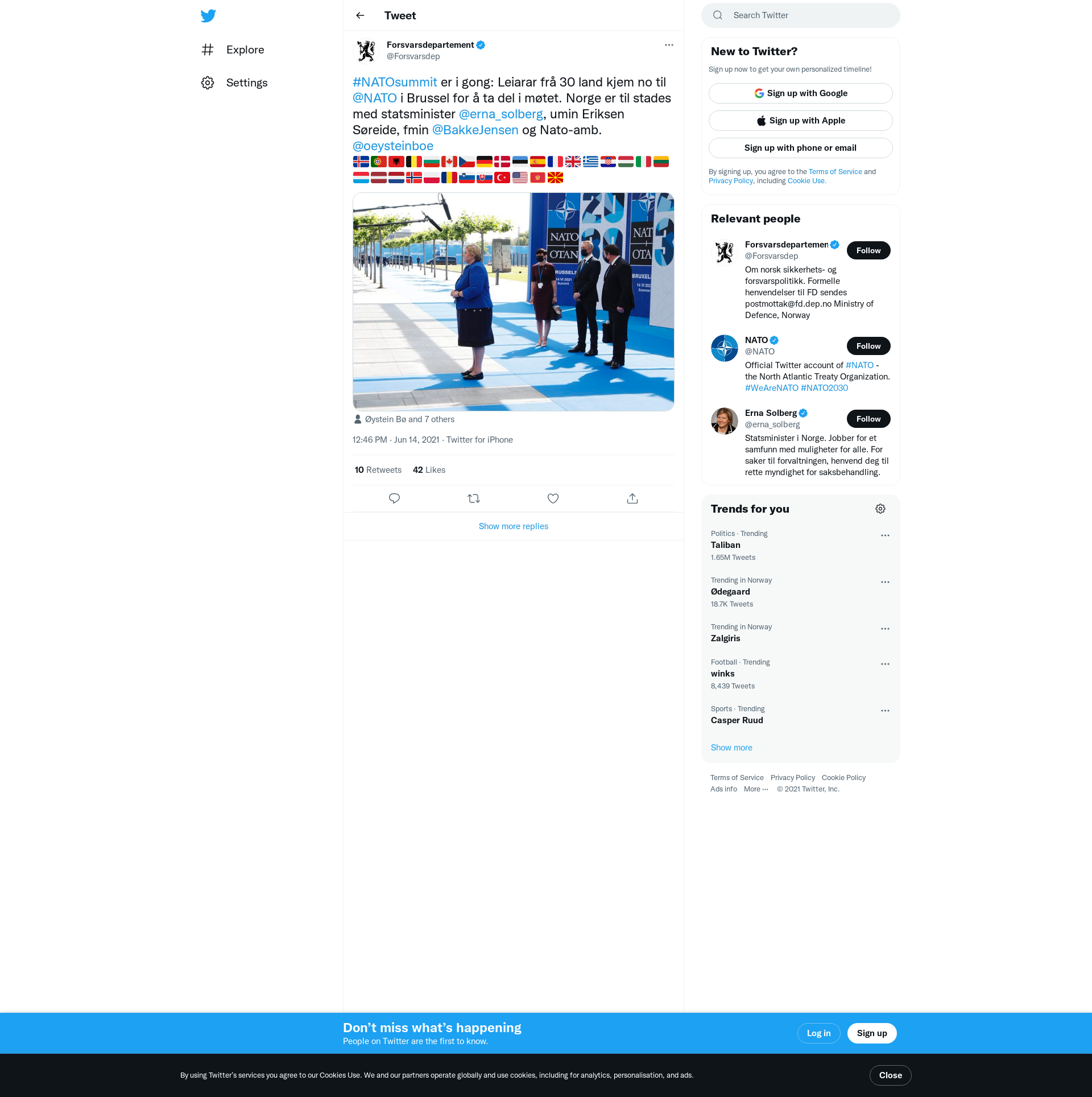 #NATOsummit er i gong: Leiarar frå 30 land kjem no til @NATO i Brussel for å ta del i møtet. Norge er til stades med statsminister @erna_solberg, umin Eriksen Søreide, fmin @BakkeJensen og Nato-amb. @oeysteinboe