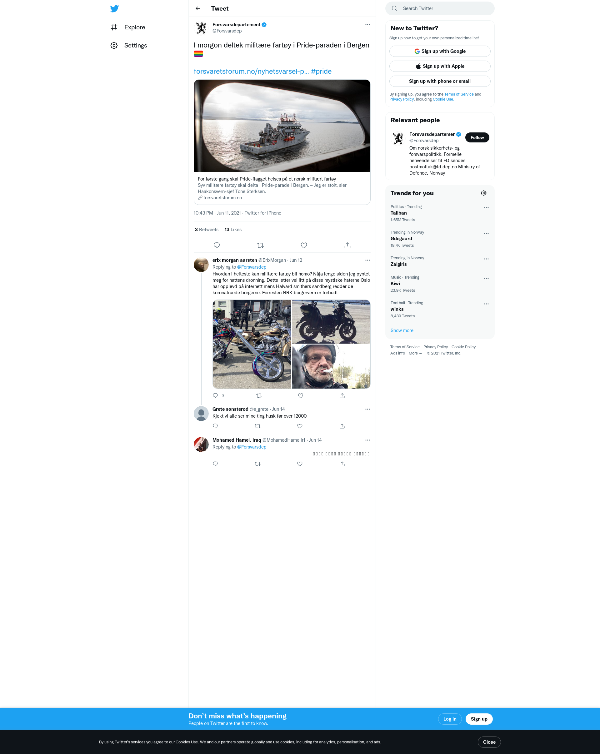 I morgon deltek militære fartøy i Pride-paraden i Bergen 🏳️🌈 https://t.co/zP8nNoGurK #pride