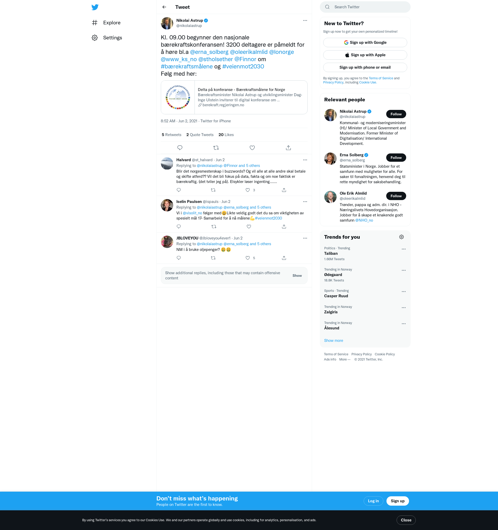 Kl. 09.00 begynner den nasjonale bærekraftskonferansen! 3200 deltagere er påmeldt for å høre bl.a @erna_solberg @oleerikalmlid @lonorge @www_ks_no @stholsether @Finnor om #bærekraftsmålene og #veienmot2030 Følg med her: https://t.co/8OPGJ0L8HL