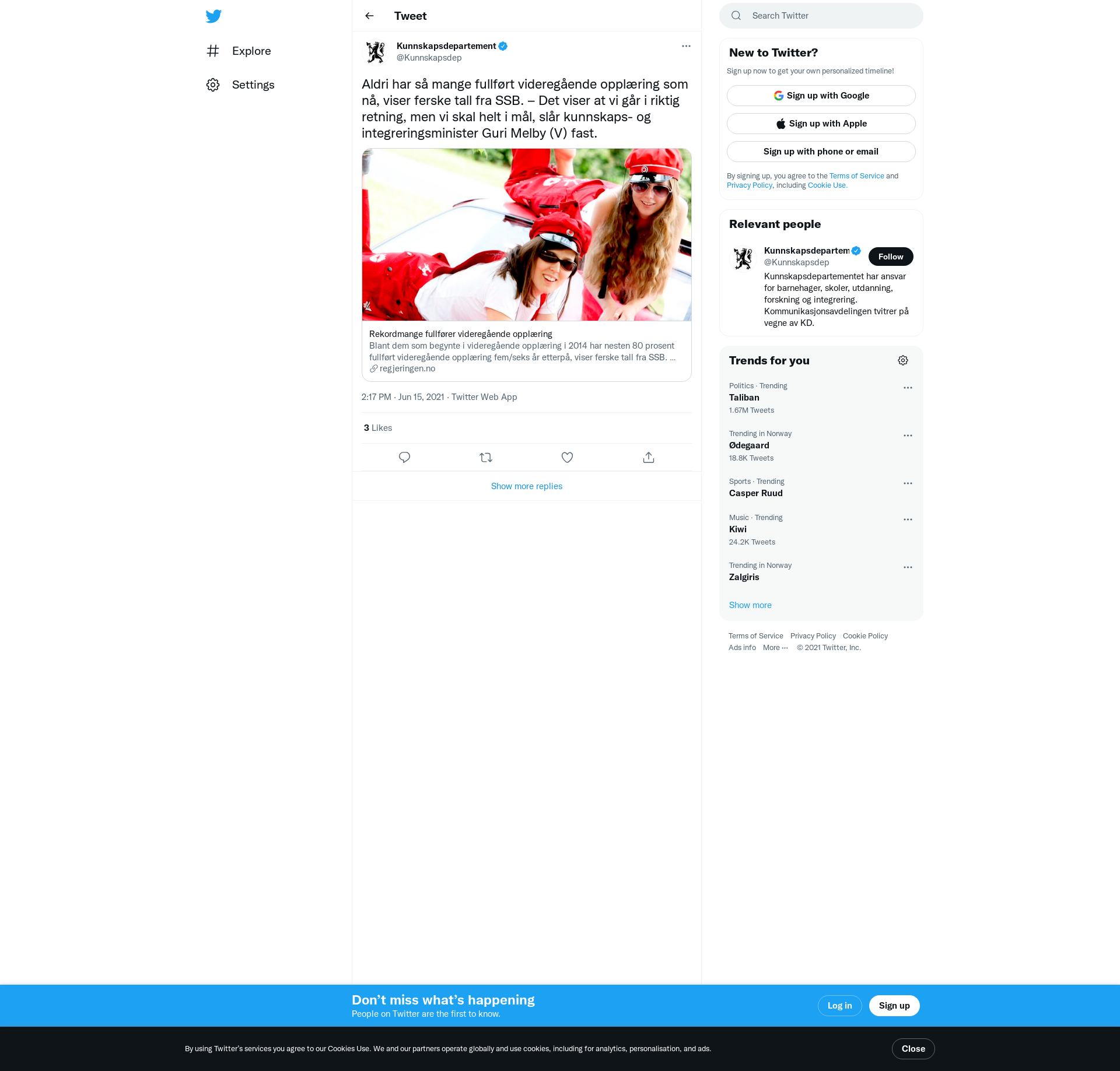 Aldri har så mange fullført videregående opplæring som nå, viser ferske tall fra SSB. – Det viser at vi går i riktig retning, men vi skal helt i mål, slår kunnskaps- og integreringsminister Guri Melby (V) fast. https://t.co/3GW1HlokIR