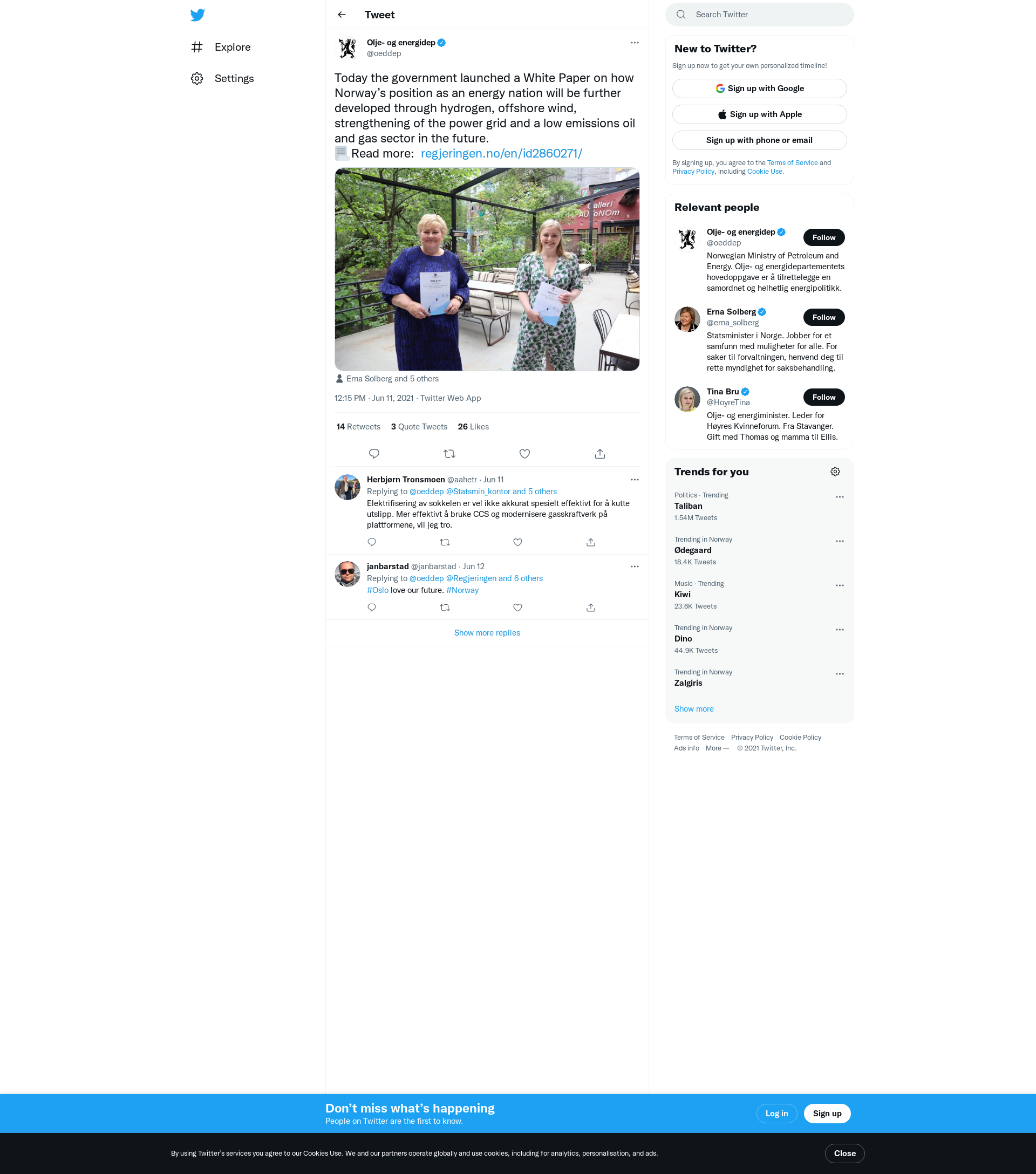 Today the government launched a White Paper on how Norway’s position as an energy nation will be further developed through hydrogen, offshore wind, strengthening of the power grid and a low emissions oil and gas sector in the future.