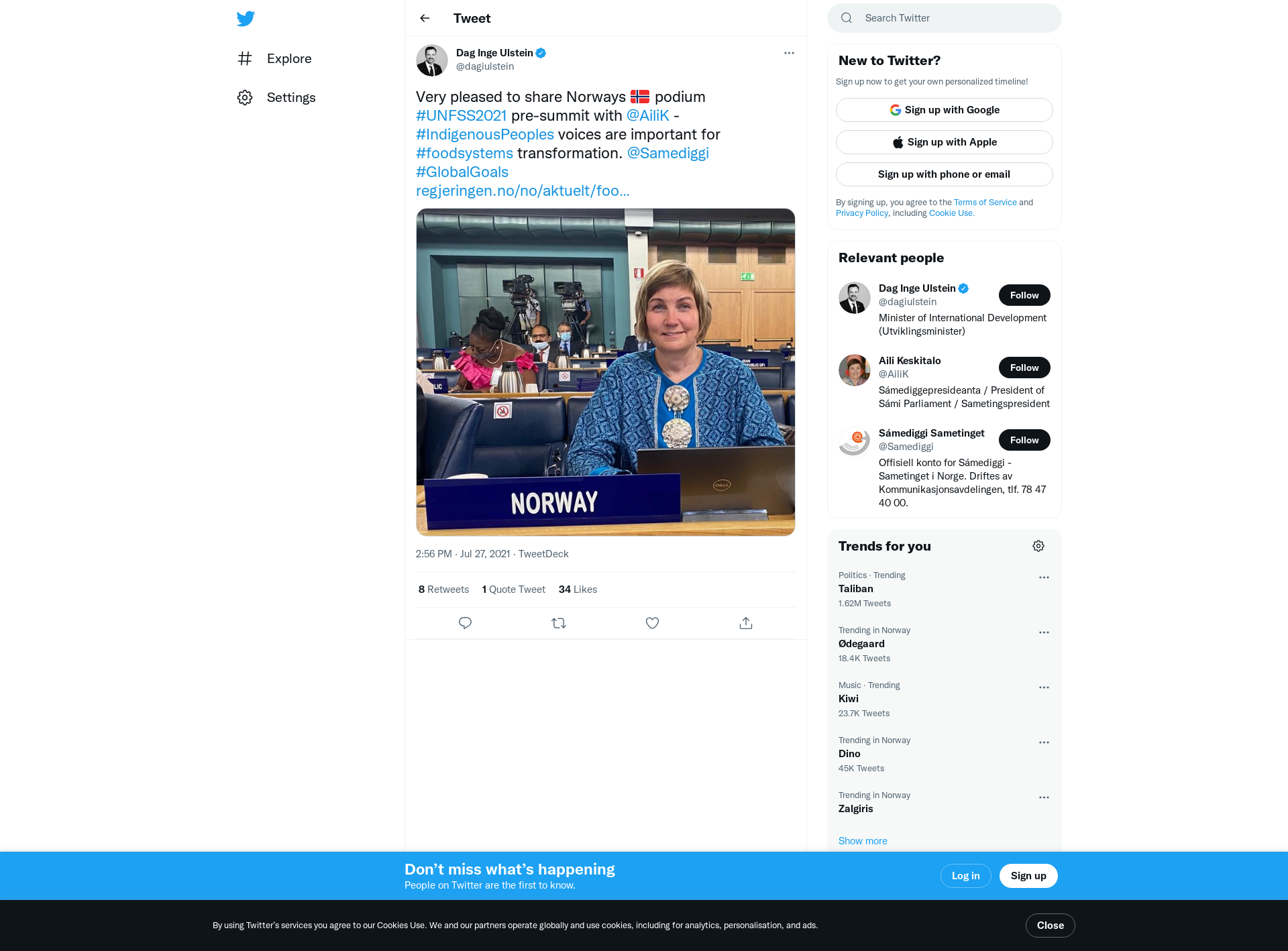 Utviklingsministerens replikk (digitalt) på «Ministerial roundtable – transforming food systems for achieving the sustainable development goals: Rising to the challenge», formøtet til FNs toppmøte om matsystemer.