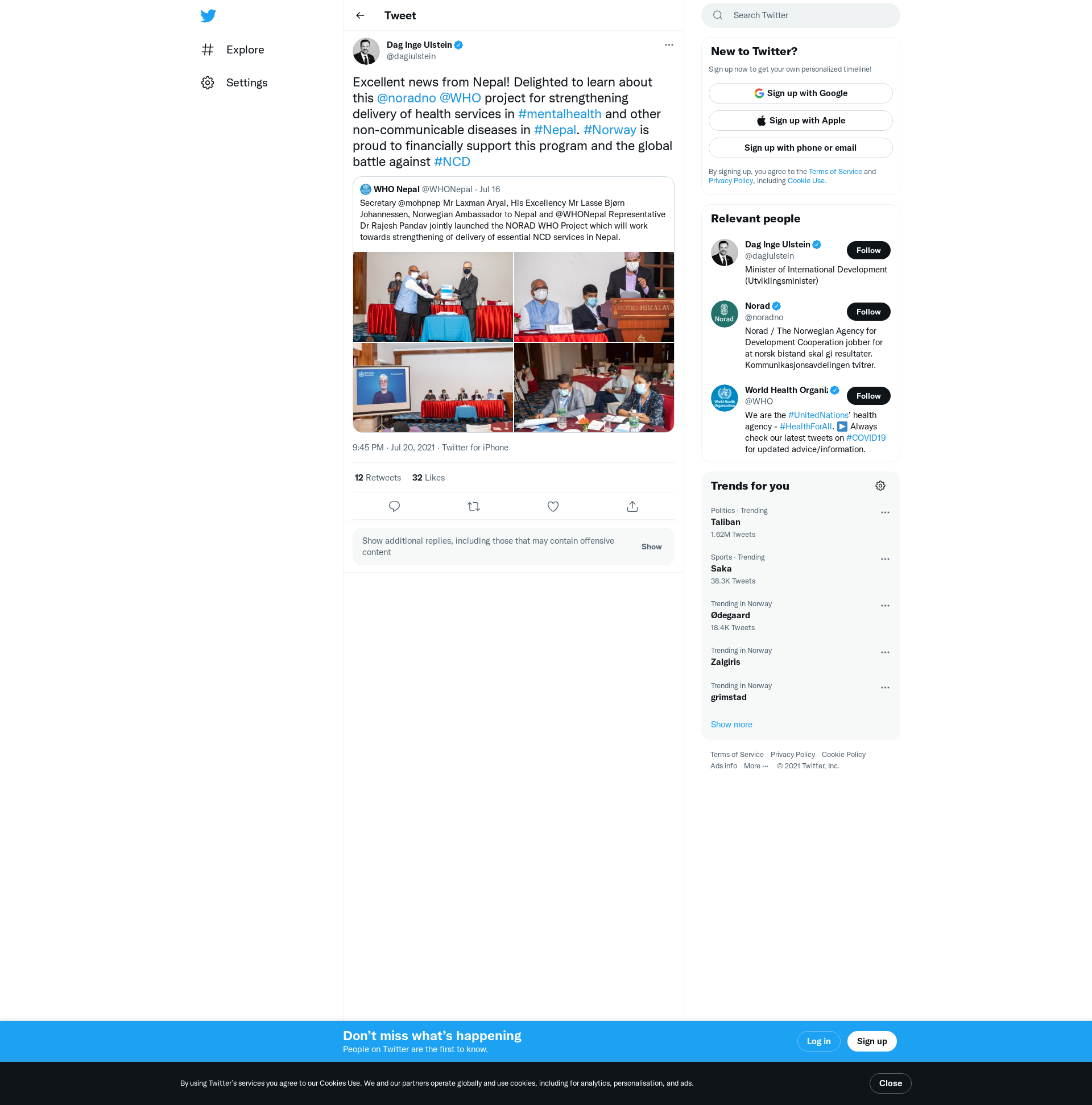Excellent news from Nepal! Delighted to learn about this @noradno @WHO project for strengthening delivery of health services in #mentalhealth and other non-communicable diseases in #Nepal. #Norway is proud to financially support this program and the global battle against #NCD