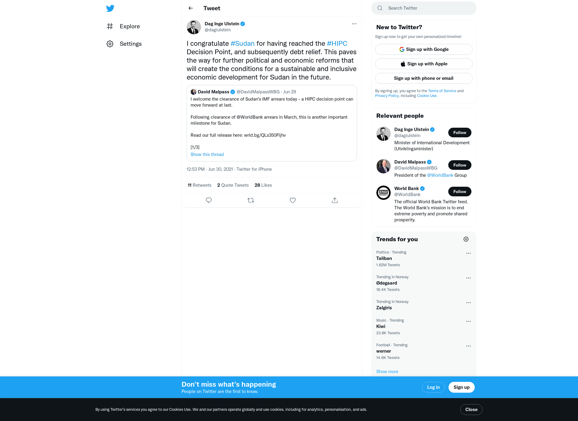 I congratulate #Sudan for having reached the #HIPC Decision Point, and subsequently debt relief. This paves the way for further political and economic reforms that will create the conditions for a sustainable and inclusive economic development for Sudan in the future.