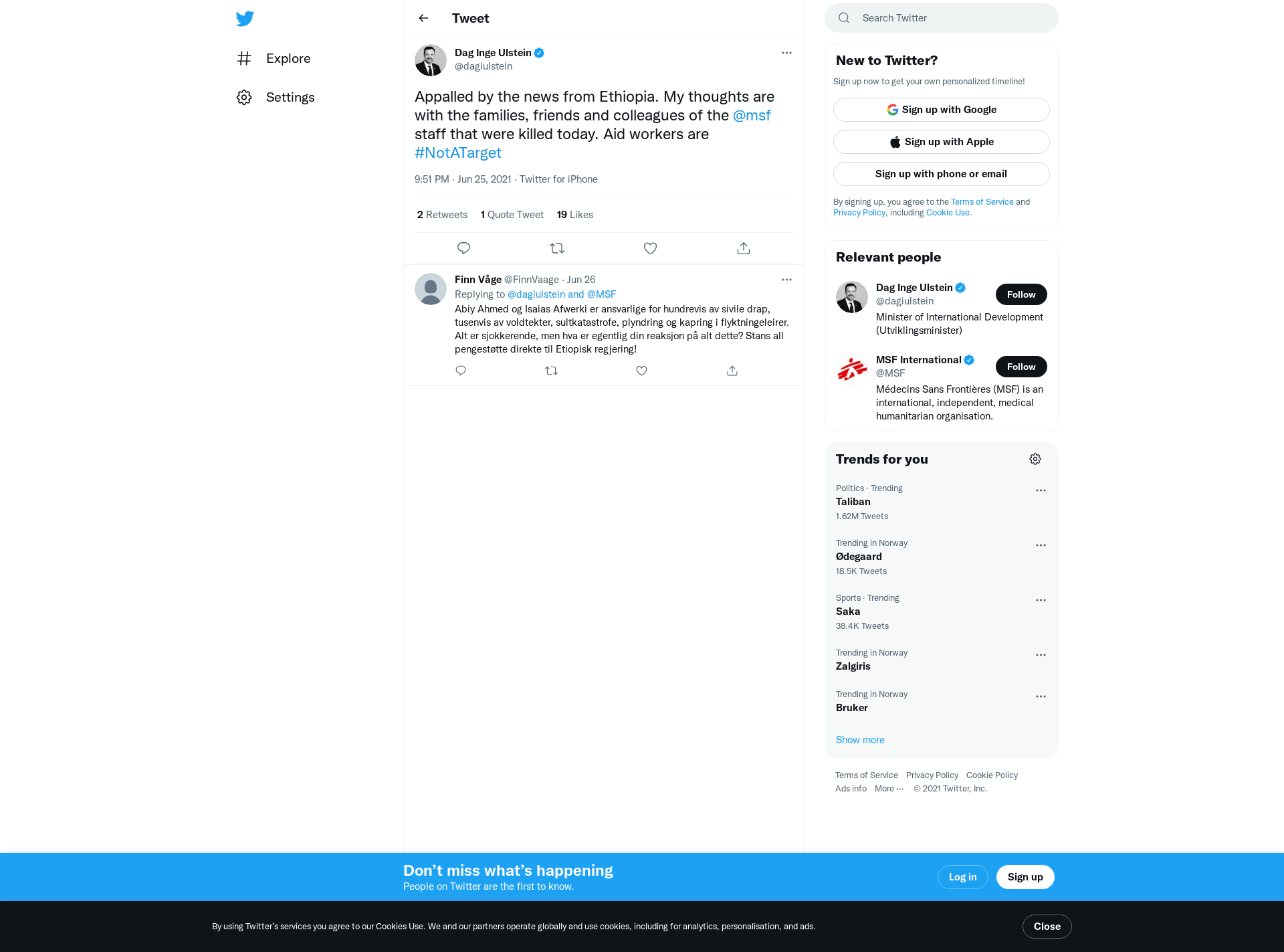 Appalled by the news from Ethiopia. My thoughts are with the families, friends and colleagues of the @msf staff that were killed today. Aid workers are #NotATarget