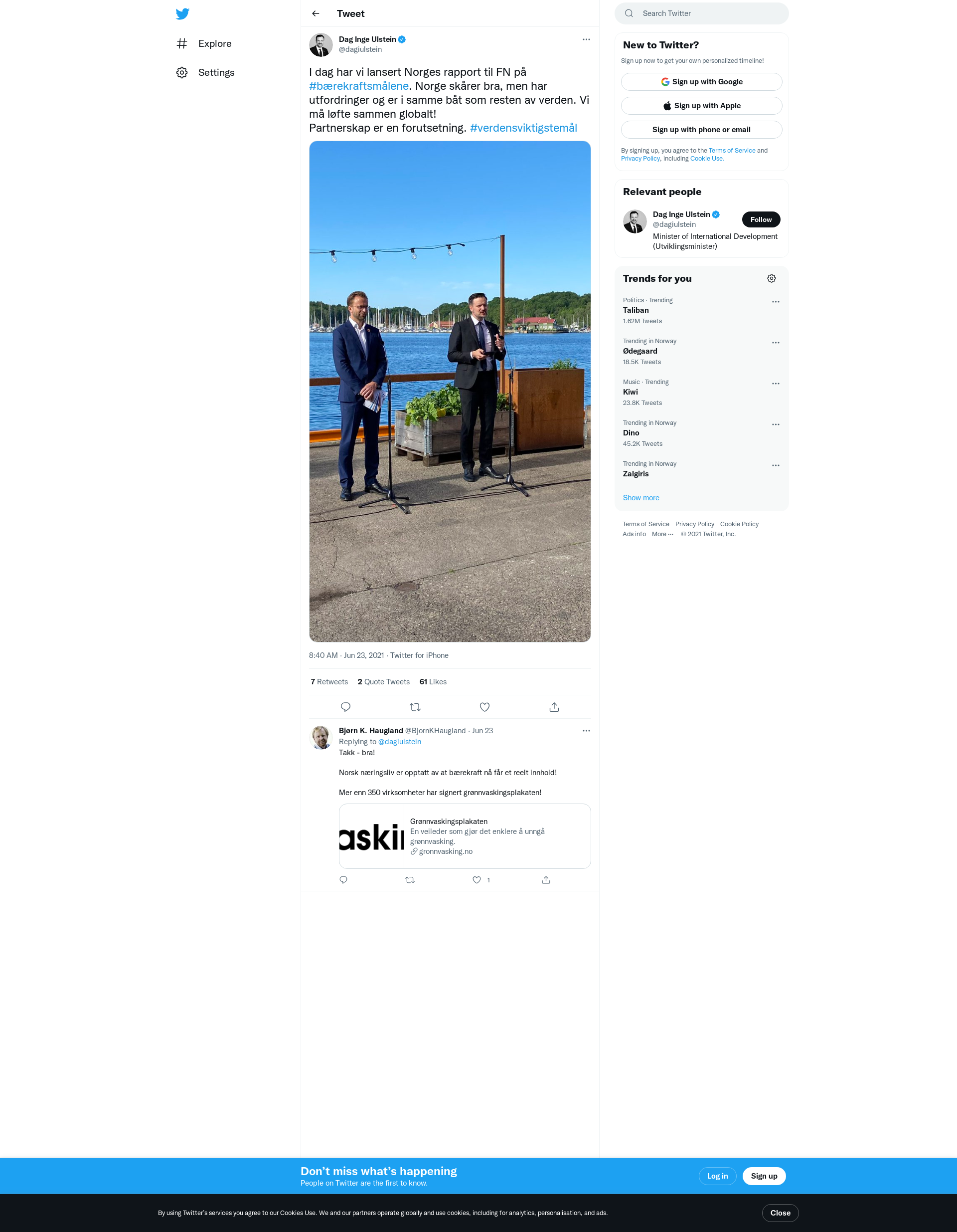 I dag har vi lansert Norges rapport til FN på #bærekraftsmålene. Norge skårer bra, men har utfordringer og er i samme båt som resten av verden. Vi må løfte sammen globalt!