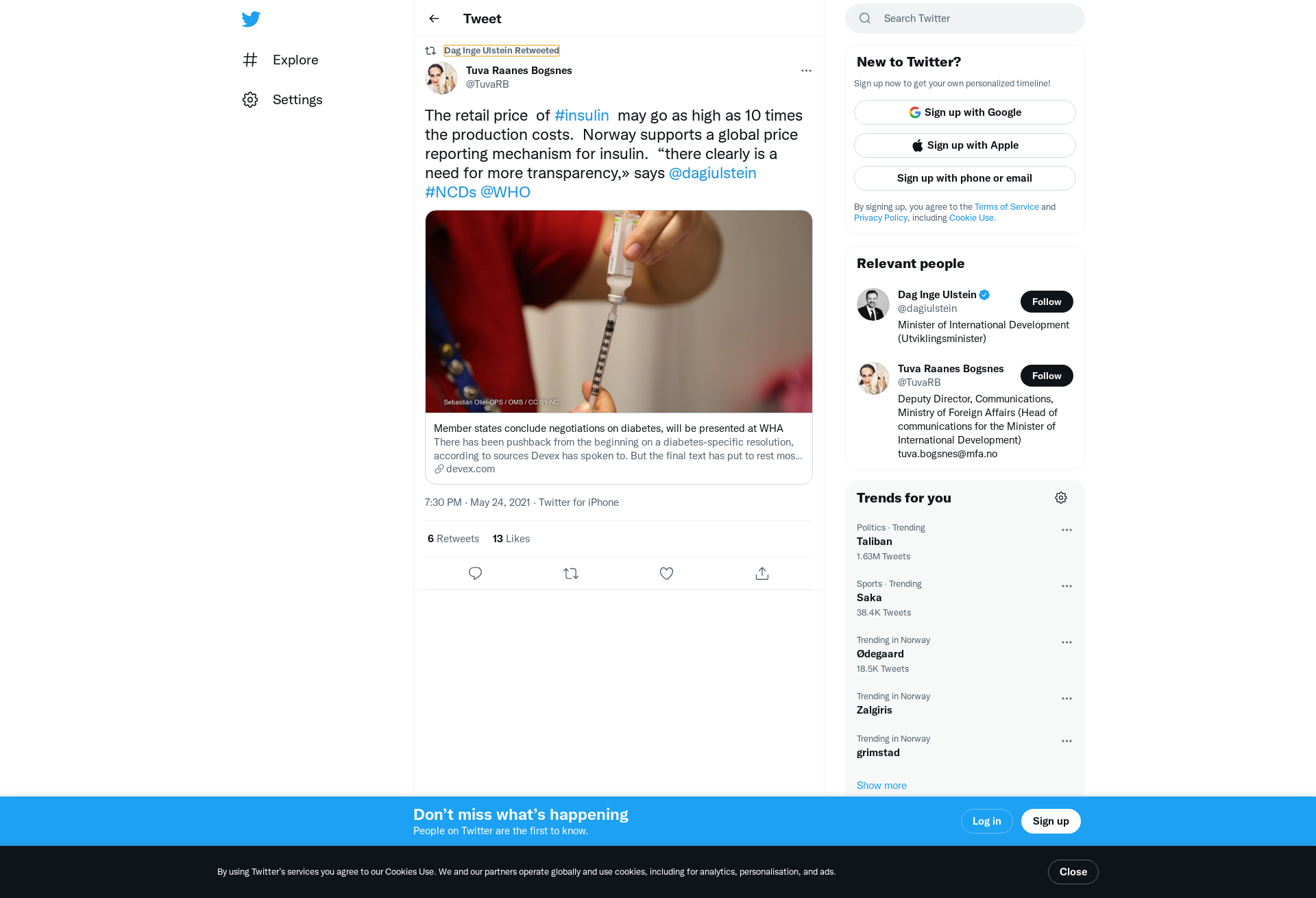 RT @TuvaRB: The retail price of #insulin may go as high as 10 times the production costs. Norway supports a global price reporting mechanism for insulin. “there clearly is a need for more transparency,» says @dagiulstein