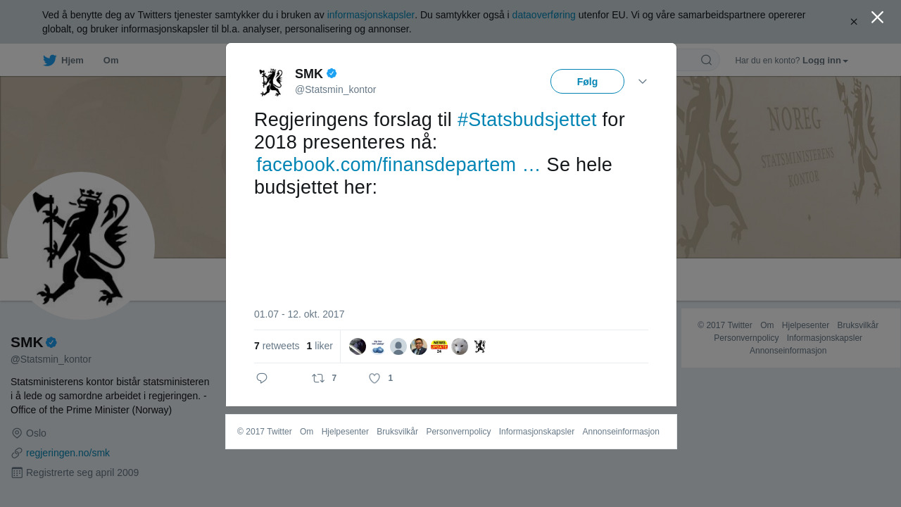 Regjeringens forslag til #Statsbudsjettet for 2018 presenteres nå: https://t.co/RmtyjM5s7k Se hele budsjettet her: https://t.co/nLFdRRoJ57