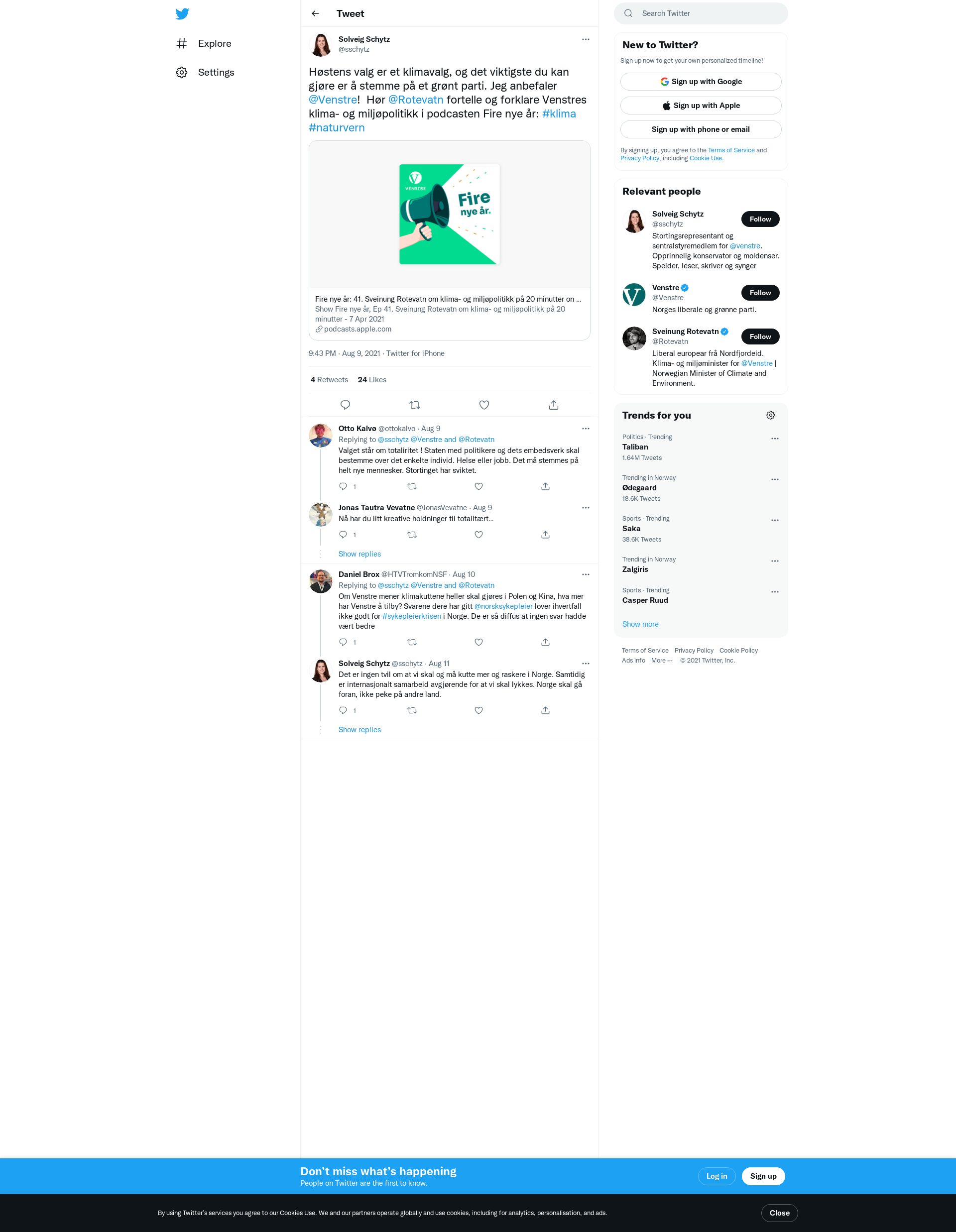 Høstens valg er et klimavalg, og det viktigste du kan gjøre er å stemme på et grønt parti. Jeg anbefaler @Venstre! Hør @Rotevatn fortelle og forklare Venstres klima- og miljøpolitikk i podcasten Fire nye år: #klima #naturvern https://t.co/BApnjAon0e