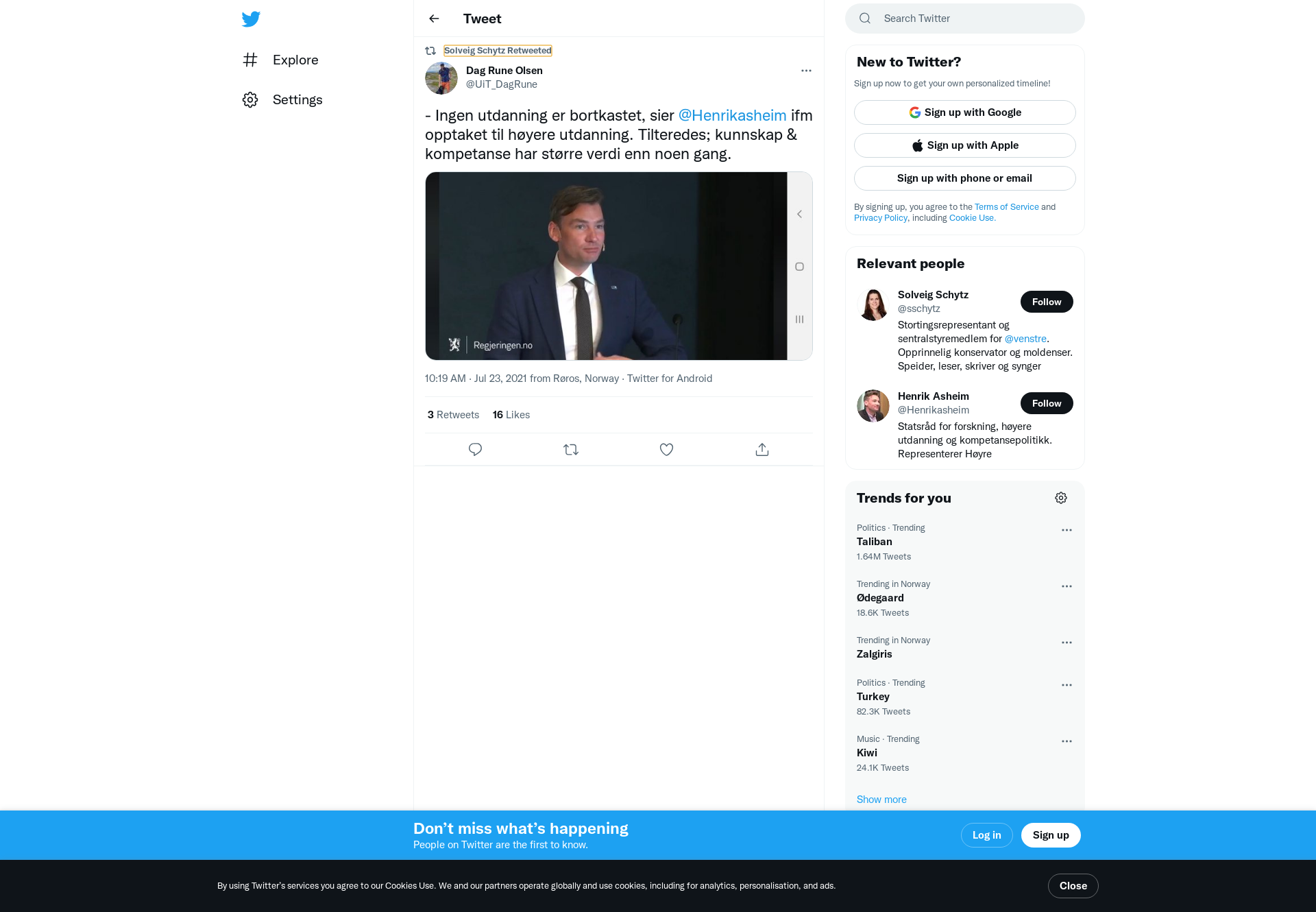 RT @Prof_DROlsen: - Ingen utdanning er bortkastet, sier @Henrikasheim ifm opptaket til høyere utdanning. Tilteredes; kunnskap & kompetanse har større verdi enn noen gang. https://t.co/h1Vbxf75zj