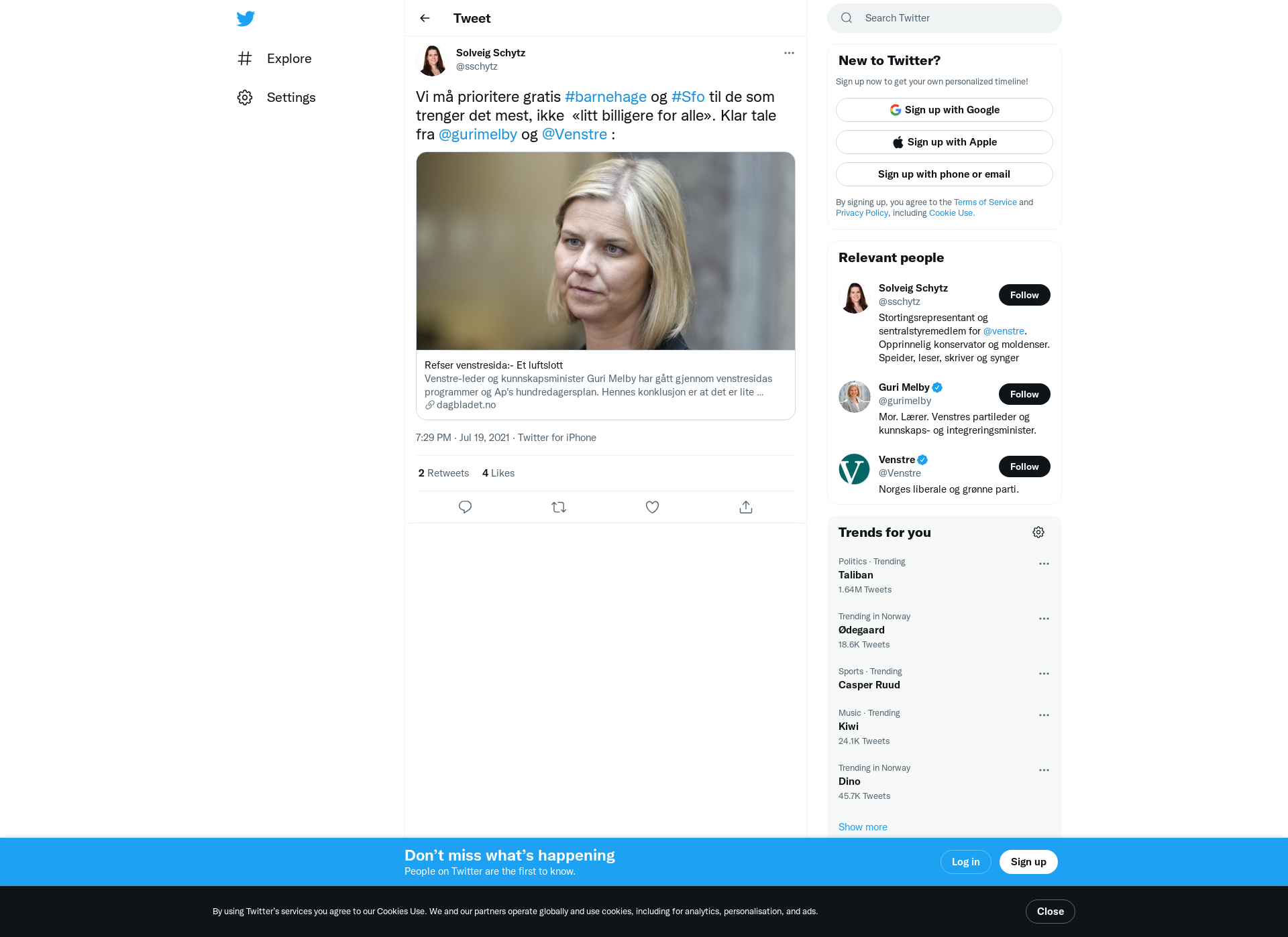 Vi må prioritere gratis #barnehage og #Sfo til de som trenger det mest, ikke «litt billigere for alle». Klar tale fra @gurimelby og @Venstre : https://t.co/DwmH7xQQ7u