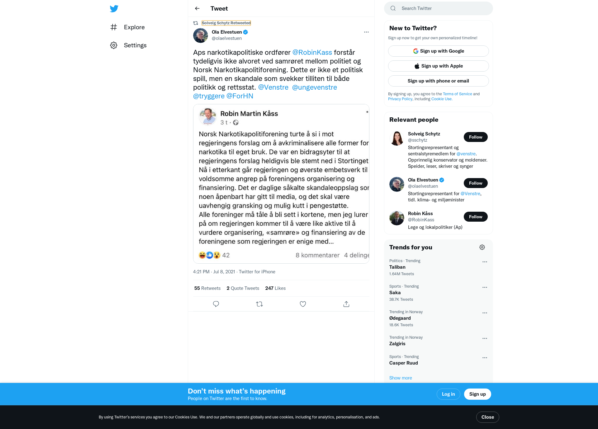 RT @olaelvestuen: Aps narkotikapolitiske ordfører @RobinKass forstår tydeligvis ikke alvoret ved samrøret mellom politiet og Norsk Narkotikapolitiforening. Dette er ikke et politisk spill, men en skandale som svekker tilliten til både politikk og rettsstat. @Venstre @ungevenstre @tryggere @ForHN https://t.co/K7oBT2DYgL