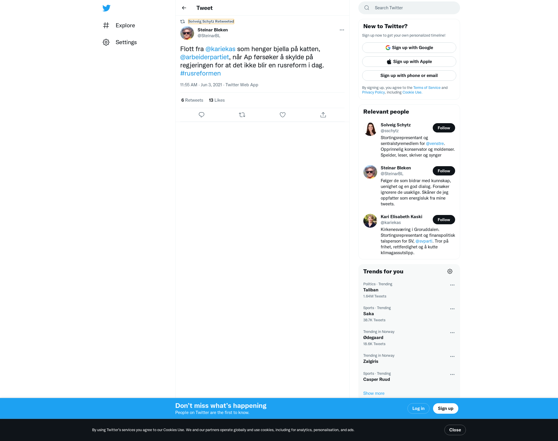 RT @SteinarBL: Flott fra @kariekas som henger bjella på katten, @arbeiderpartiet, når Ap førsøker å skylde på regjeringen for at det ikke blir en rusreform i dag. #rusreformen