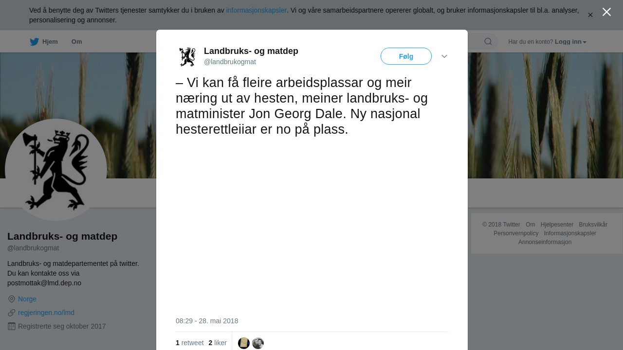 – Vi kan få fleire arbeidsplassar og meir næring ut av hesten, meiner landbruks- og matminister Jon Georg Dale. Ny nasjonal hesterettleiiar er no på plass. https://t.co/ZwJxhrsVsM