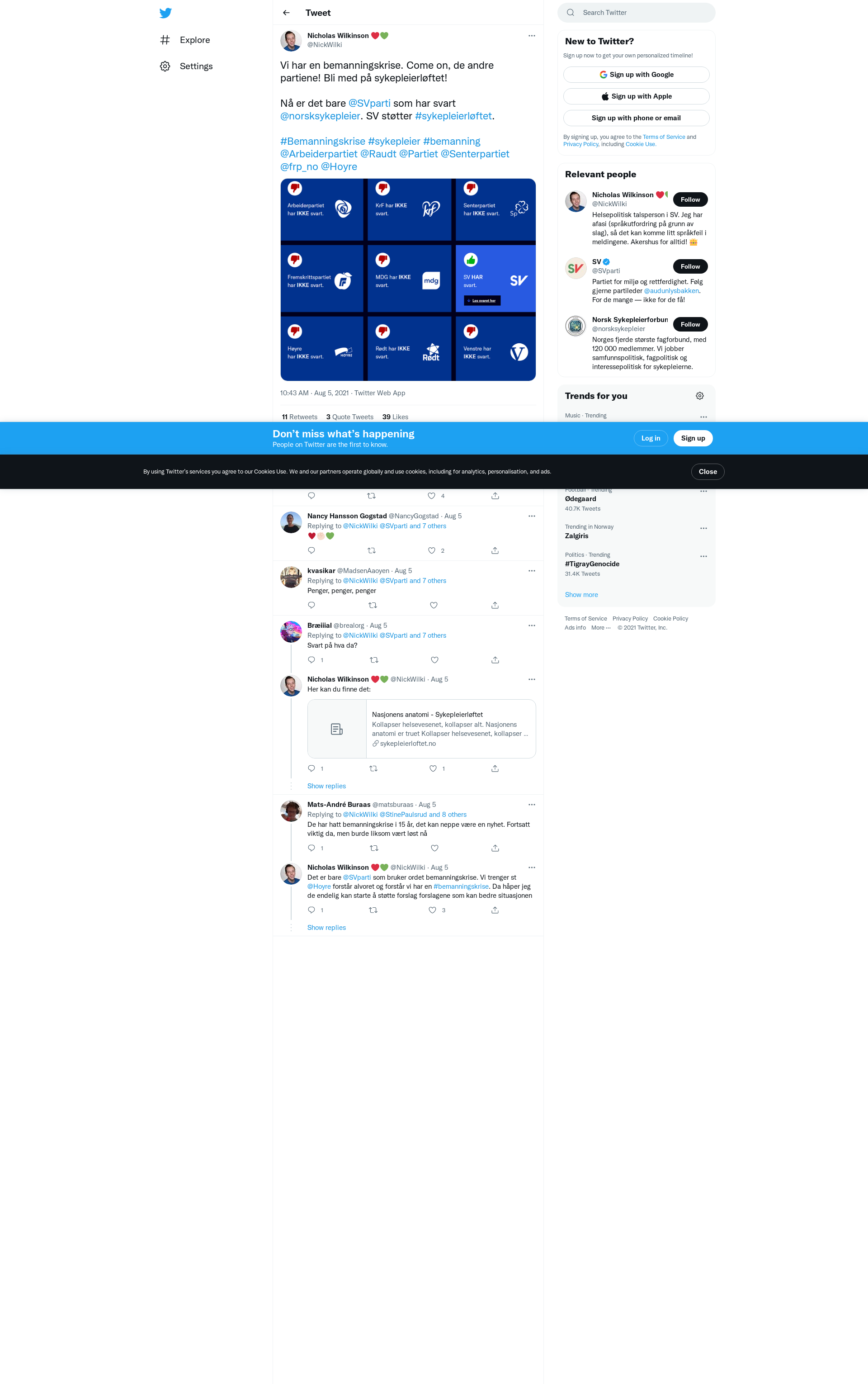 Nå er det bare @SVparti som har svart @norsksykepleier. SV støtter #sykepleierløftet.