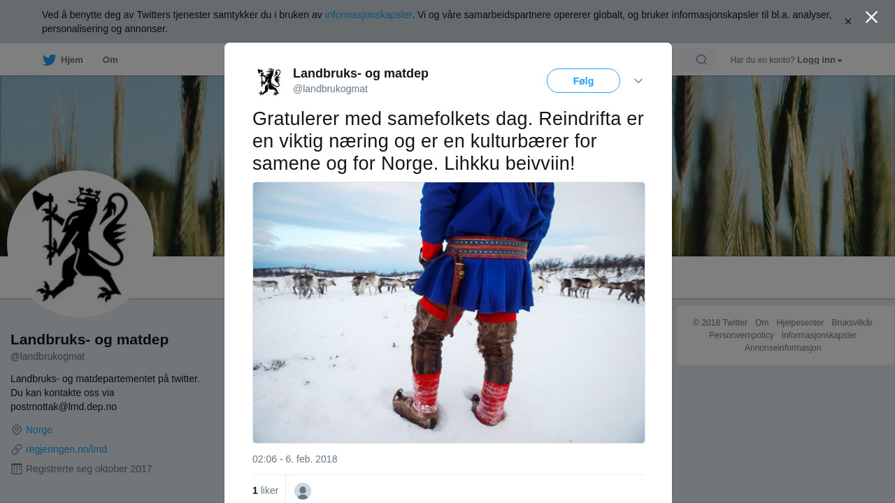 Gratulerer med samefolkets dag. Reindrifta er en viktig næring og er en kulturbærer for samene og for Norge. Lihkku… https://t.co/CTFO6NbTnO