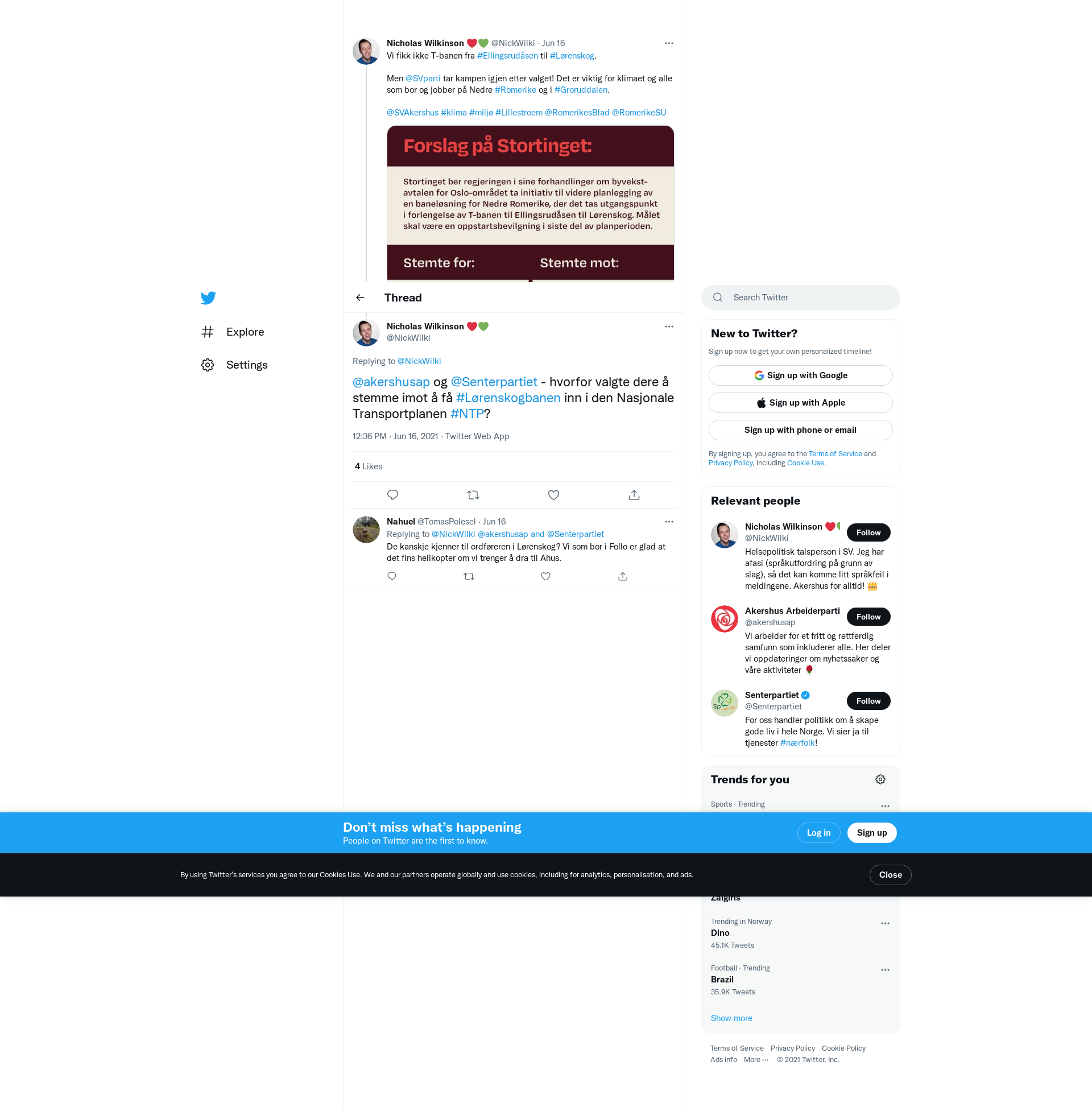 @akershusap og @Senterpartiet - hvorfor valgte dere å stemme imot å få #Lørenskogbanen inn i den Nasjonale Transportplanen #NTP?