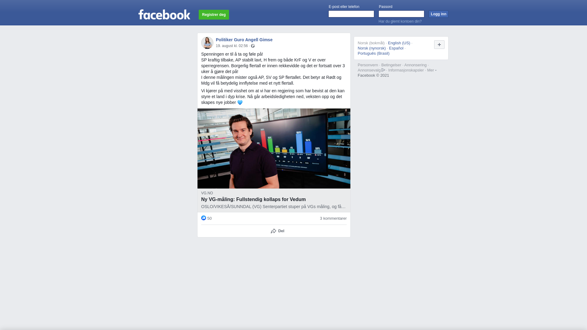 Ny VG-måling: Fullstendig kollaps for Vedum