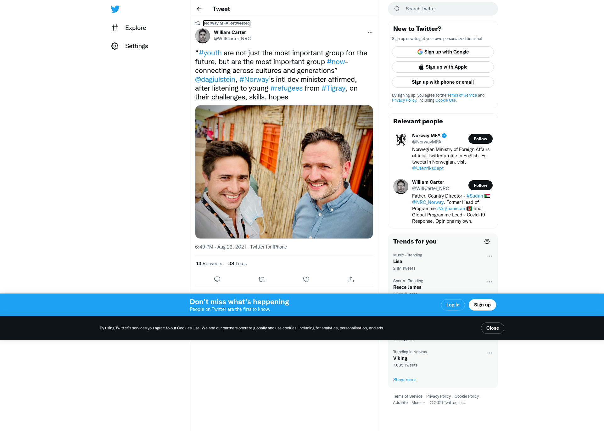 RT @WillCarter_NRC: “#youth are not just the most important group for the future, but are the most important group #now-connecting across cultures and generations” @dagiulstein, #Norway’s intl dev minister affirmed, after listening to young #refugees from #Tigray, on their challenges, skills, hopes https://t.co/gUeR5r3LWj