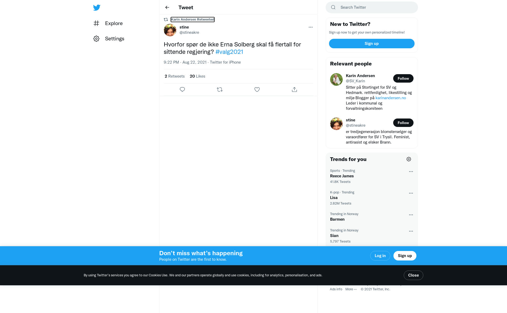 RT @stineakre: Hvorfor spør de ikke Erna Solberg skal få flertall for sittende regjering? #valg2021