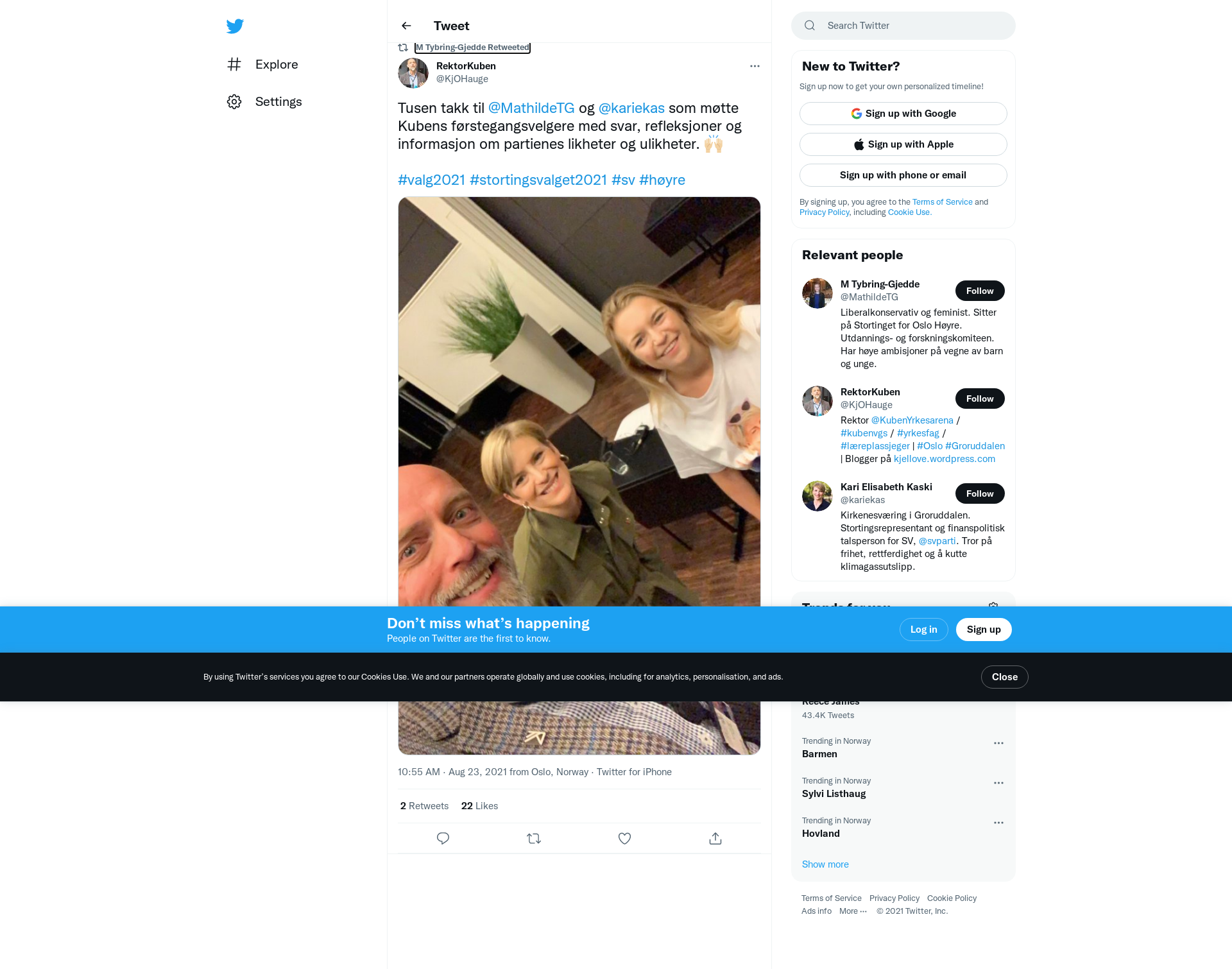 RT @KjOHauge: Tusen takk til @MathildeTG og @kariekas som møtte Kubens førstegangsvelgere med svar, refleksjoner og informasjon om partienes likheter og ulikheter. 🙌🏼