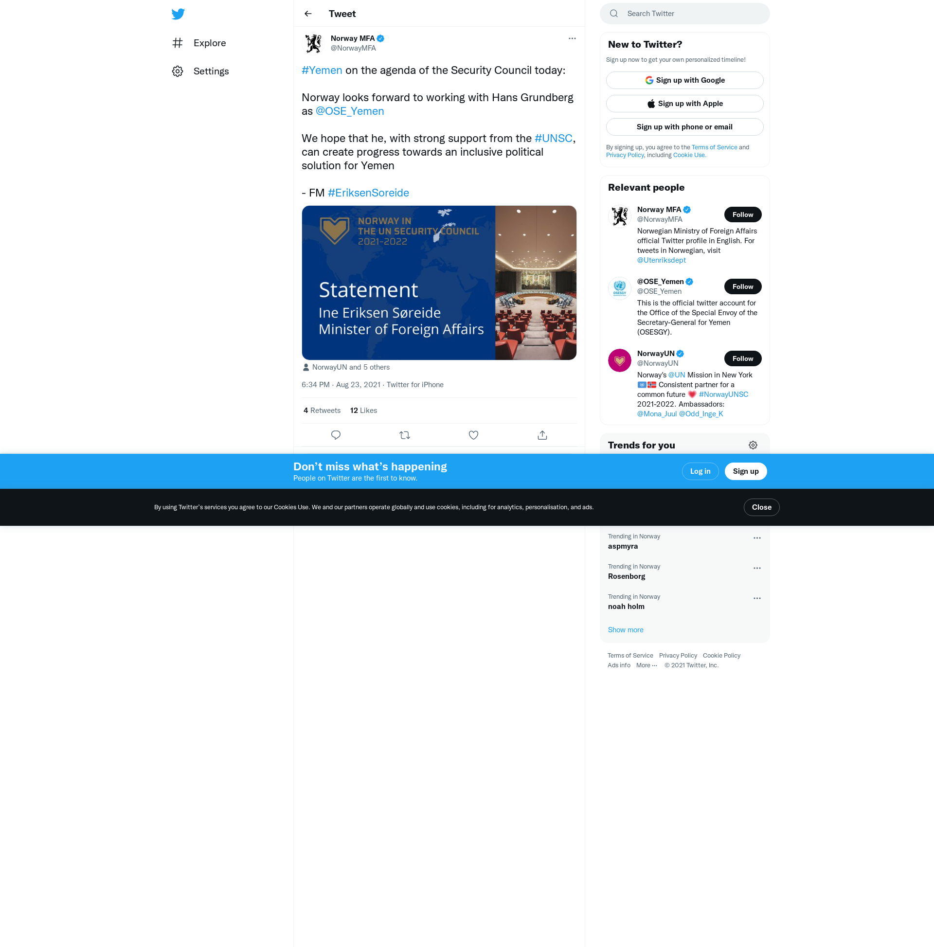 Norway looks forward to working with Hans Grundberg as @OSE_Yemen