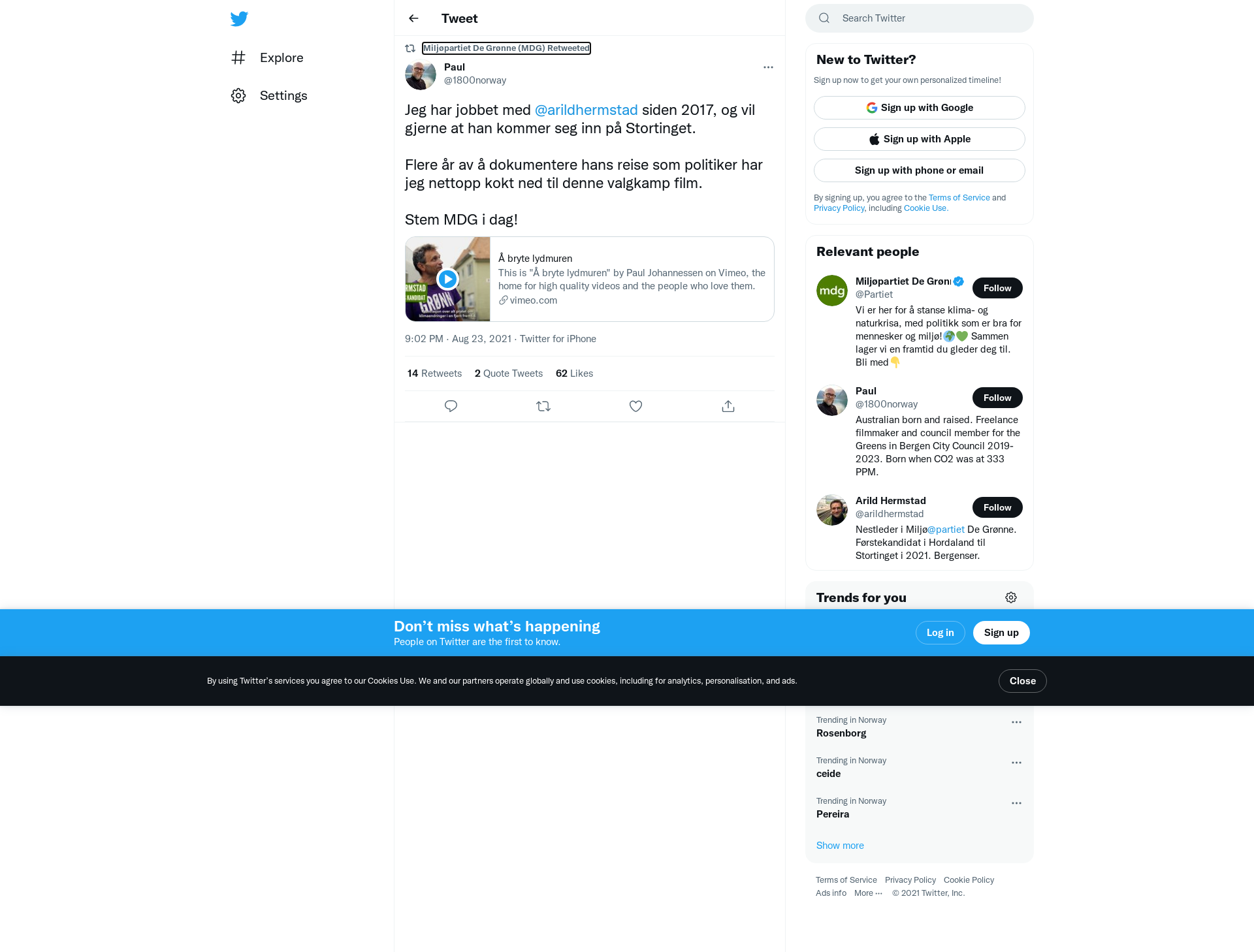 RT @1800norway: Jeg har jobbet med @arildhermstad siden 2017, og vil gjerne at han kommer seg inn på Stortinget. Flere år av å dokumentere…