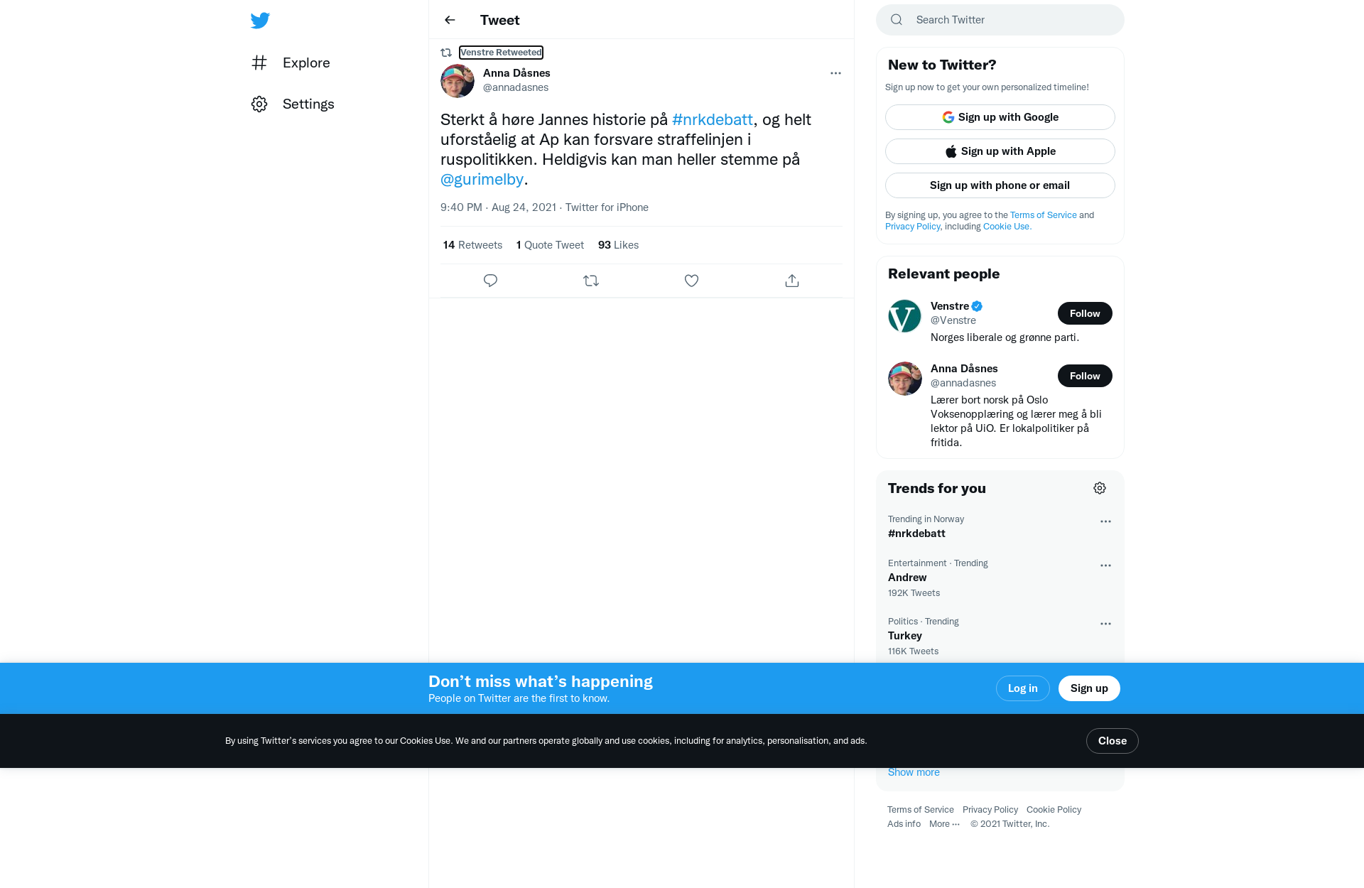 RT @annadasnes: Sterkt å høre Jannes historie på #nrkdebatt, og helt uforståelig at Ap kan forsvare straffelinjen i ruspolitikken. Heldigvis kan man heller stemme på @gurimelby.