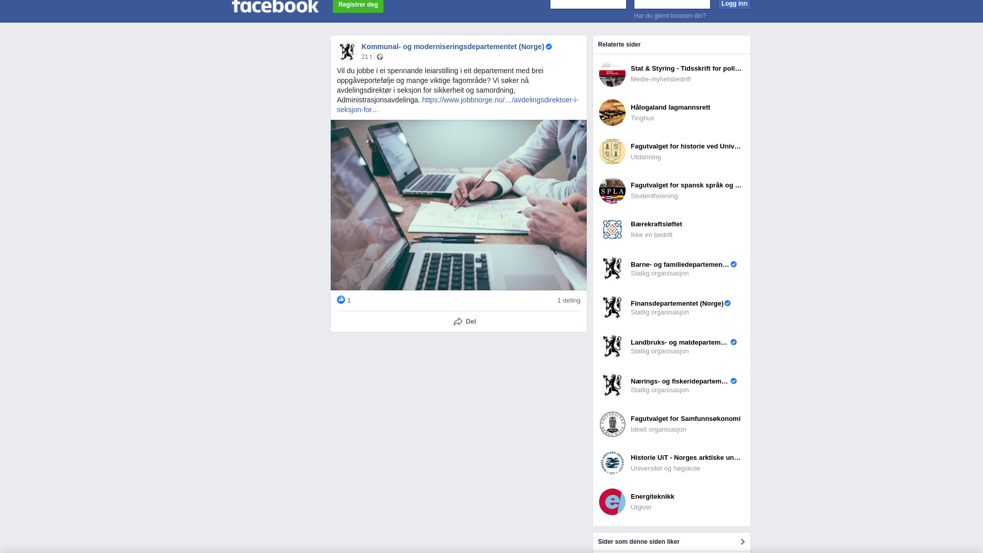 Vil du jobbe i ei spennande leiarstilling i eit departement med brei oppgåveportefølje og mange viktige fagområde? Vi søker nå avdelingsdirektør i seksjon for sikkerheit og samordning, Administrasjonsavdelinga. https://www.jobbnorge.no/nn-no/ledige-stillingar/stilling/210568/avdelingsdirektoer-i-seksjon-for-sikkerheit-og-samordning-administrasjonsavdelinga