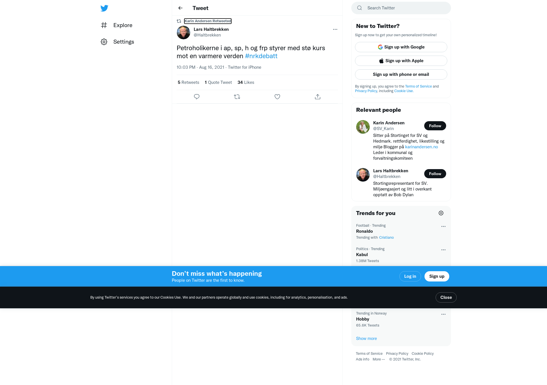 RT @Haltbrekken: Petroholikerne i ap, sp, h og frp styrer med stø kurs mot en varmere verden #nrkdebatt