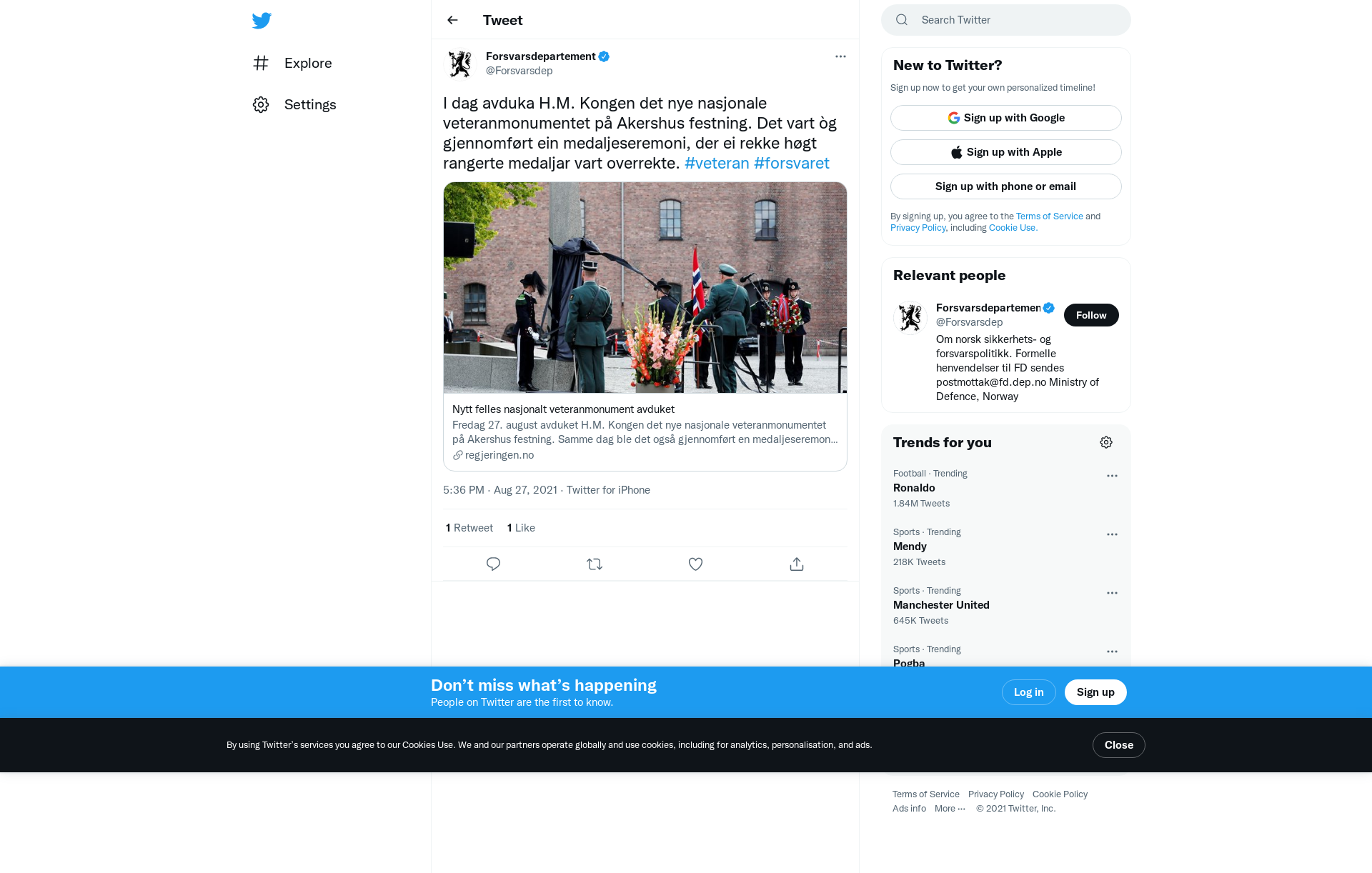 Fredag 27. august avduket H.M. Kongen det nye nasjonale veteranmonumentet på Akershus festning. Samme dag ble det også gjennomført en medaljeseremoni, der en rekke høyt rangerte medaljer ble overrakt.