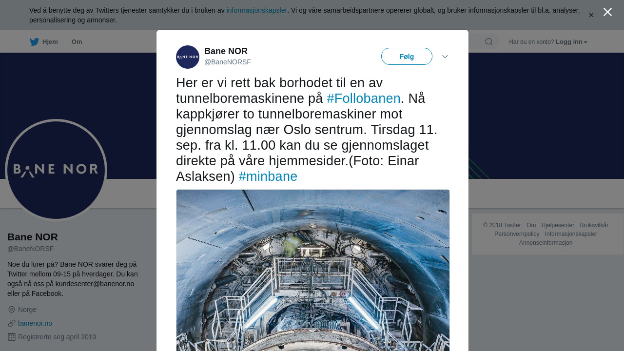 RT @BaneNORSF: Her er vi rett bak borhodet til en av tunnelboremaskinene på #Follobanen. Nå kappkjører to tunnelboremaskiner mot gjennomslag nær Oslo sentrum. Tirsdag 11. sep. fra kl. 11.00 kan du se gjennomslaget direkte på våre hjemmesider.(Foto: Einar Aslaksen) #minbane https://t.co/W3DkLwY71w