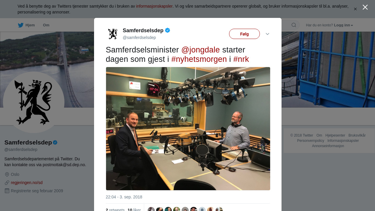 Samferdselsminister @jongdale starter dagen som gjest i #nyhetsmorgen i #nrk https://t.co/5kGs06wNey