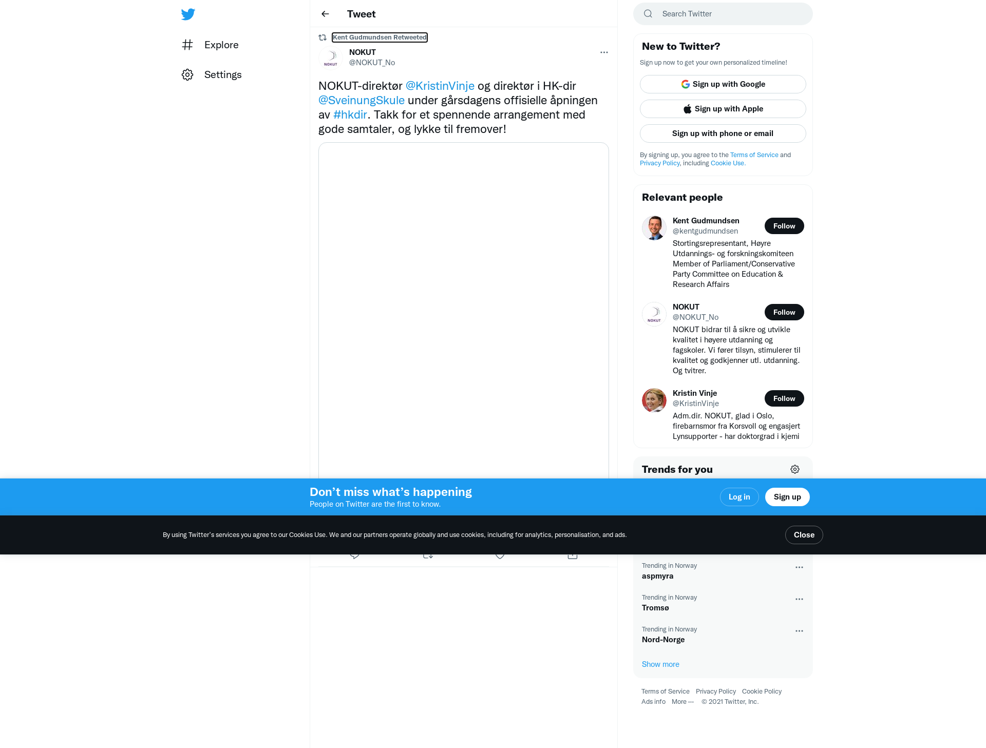 RT @NOKUT_No: NOKUT-direktør @KristinVinje og direktør i HK-dir @SveinungSkule under gårsdagens offisielle åpningen av #hkdir. Takk for et spennende arrangement med gode samtaler, og lykke til fremover! https://t.co/32XFASEesL