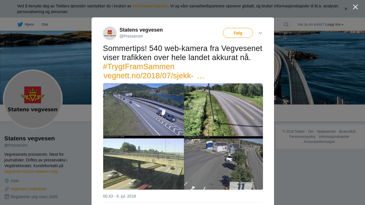 RT @Presserom: Sommertips! 540 web-kamera fra Vegvesenet viser trafikken over hele landet akkurat nå. #TrygtFramSammen… https://t.co/t442w901Fs