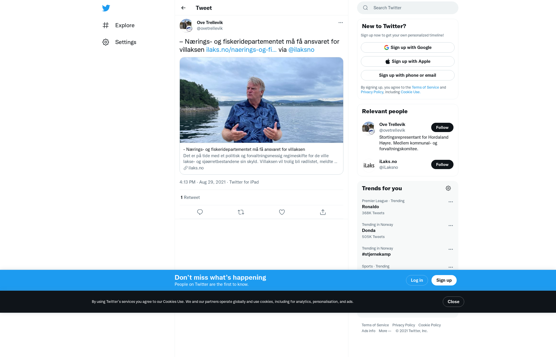 - Nærings- og fiskeridepartementet må få ansvaret for villaksen