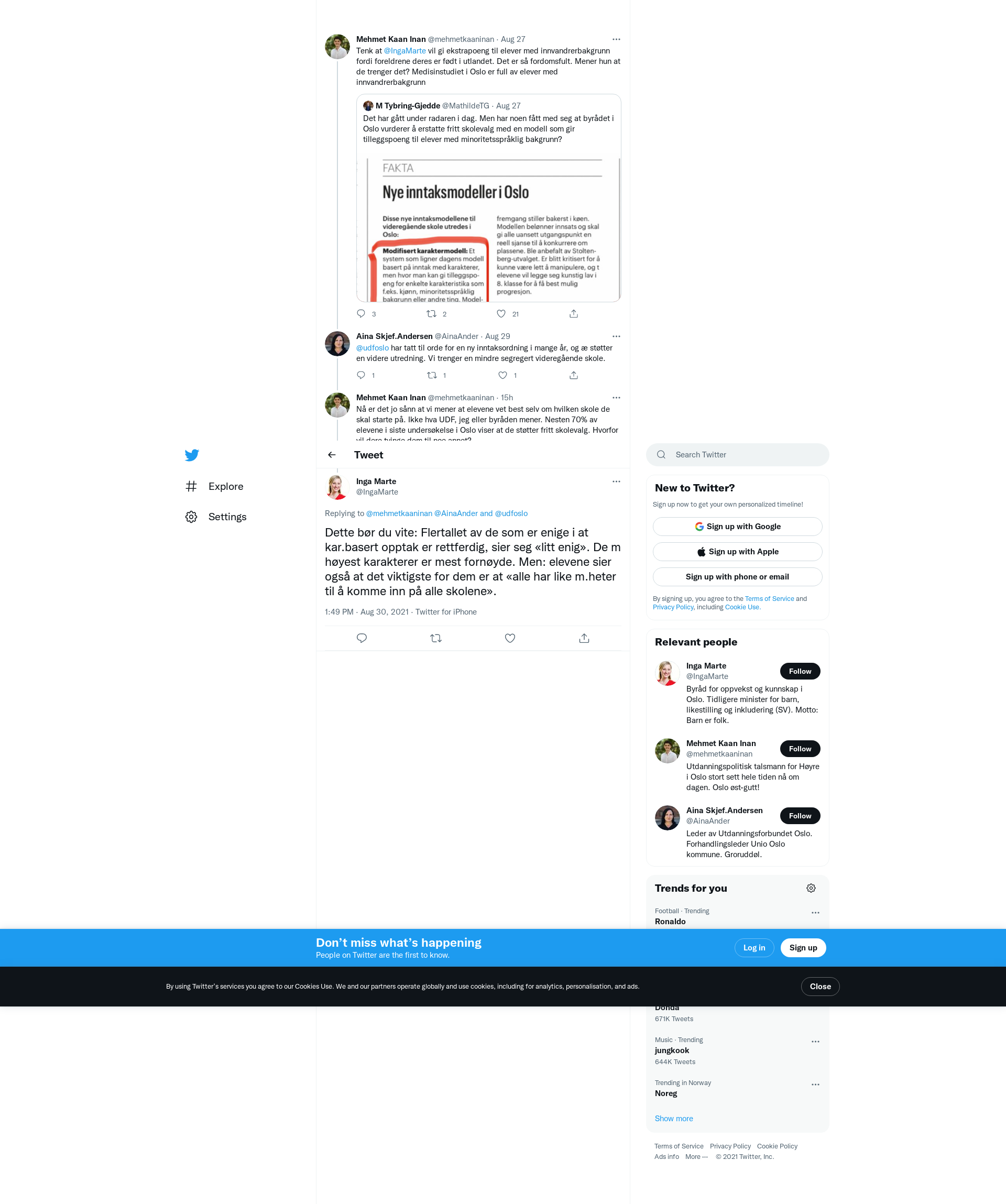 @mehmetkaaninan @AinaAnder @udfoslo Dette bør du vite: Flertallet av de som er enige i at kar.basert opptak er rettferdig, sier seg «litt enig». De m høyest karakterer er mest fornøyde. Men: elevene sier også at det viktigste for dem er at «alle har like m.heter til å komme inn på alle skolene».