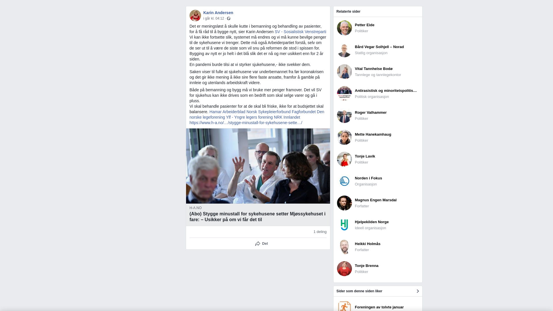 Vi skal behandle pasienter for at de skal bli friske, ikke for at budsjettet skal balansere. Hamar Arbeiderblad Norsk Sykepleierforbund Fagforbundet Den norske legeforening Ylf - Yngre legers forening NRK Innlandet