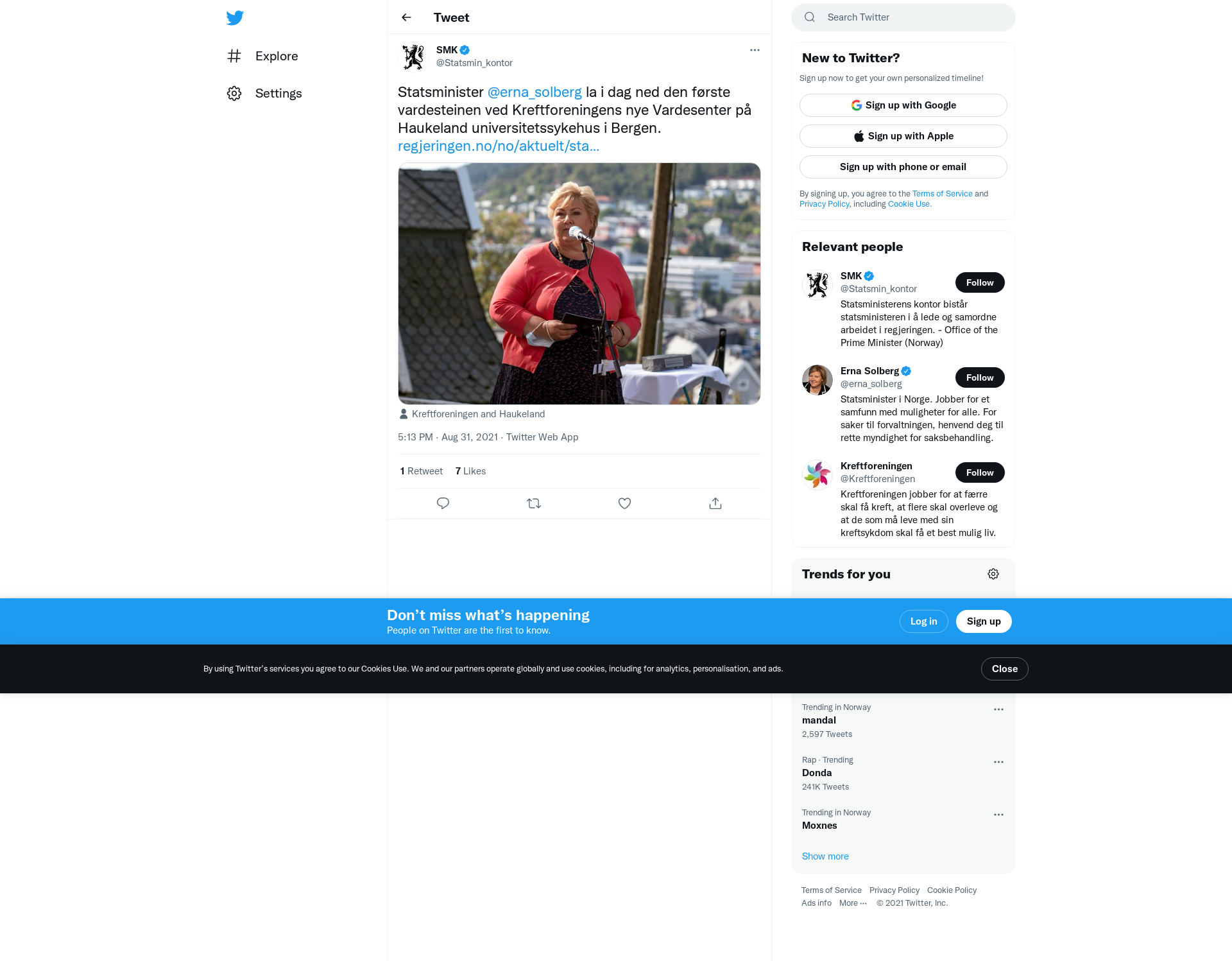 Statsminister @erna_solberg la i dag ned den første vardesteinen ved Kreftforeningens nye Vardesenter på Haukeland universitetssykehus i Bergen. https://t.co/jLHqiT1QEl https://t.co/kxEp6IlgLH