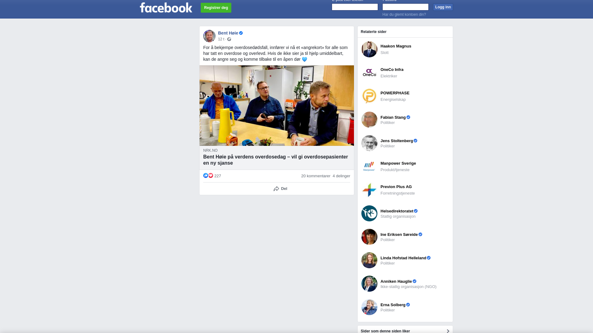 Bent Høie på verdens overdosedag – vil gi overdosepasienter en ny sjanse