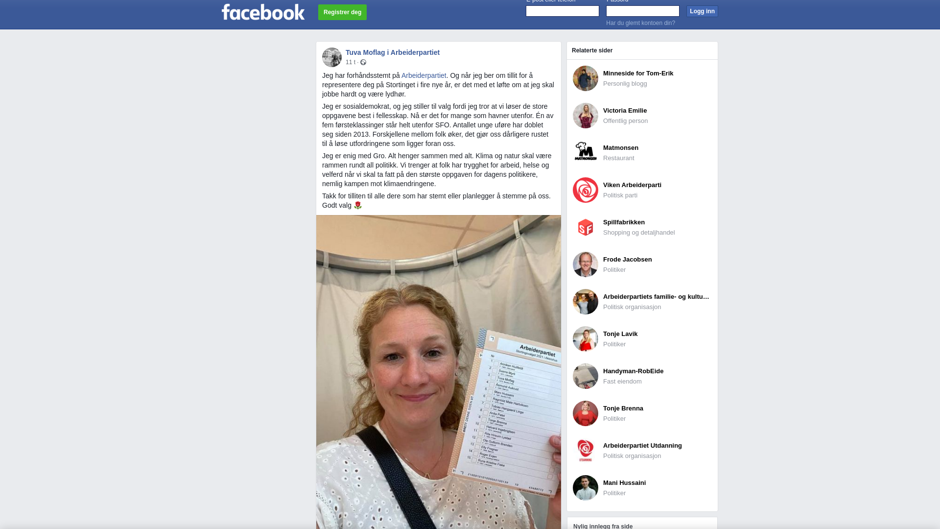 Jeg har forhåndsstemt på Arbeiderpartiet. Og når jeg ber om tillit for å representere deg på Stortinget i fire nye år, er det med et løfte om at jeg skal jobbe hardt og være lydhør.