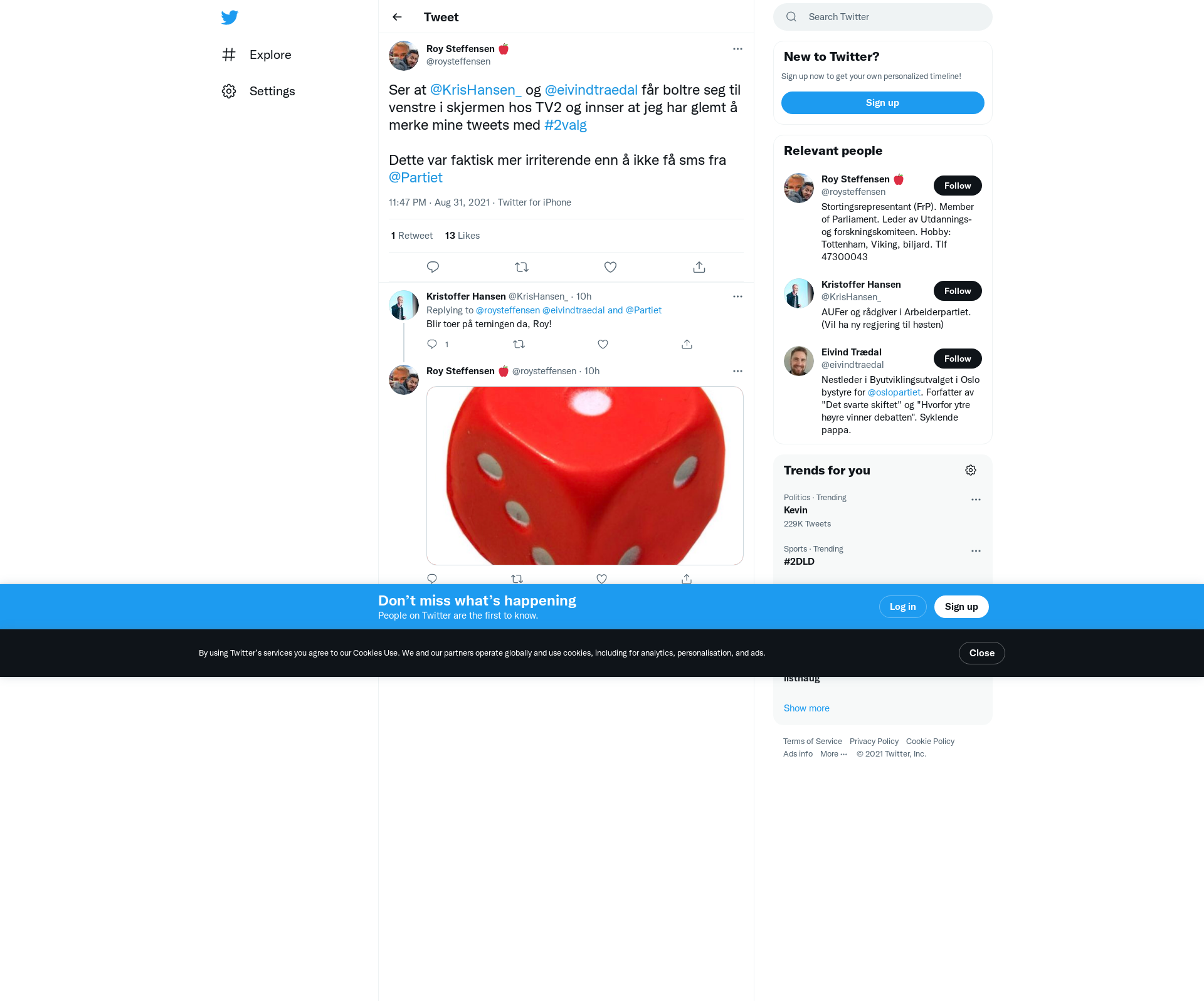 Ser at @KrisHansen_ og @eivindtraedal får boltre seg til venstre i skjermen hos TV2 og innser at jeg har glemt å merke mine tweets med #2valg