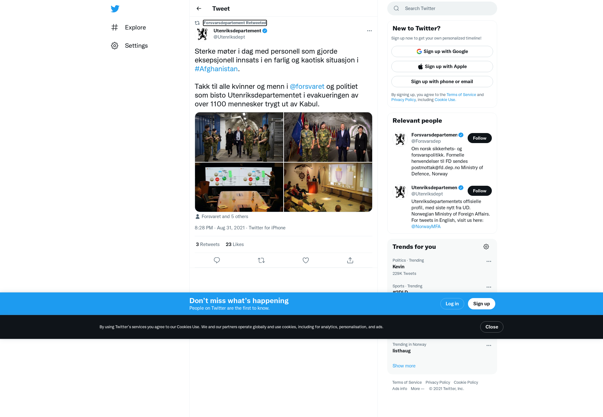 RT @Utenriksdept: Sterke møter i dag med personell som gjorde eksepsjonell innsats i en farlig og kaotisk situasjon i #Afghanistan. Takk…