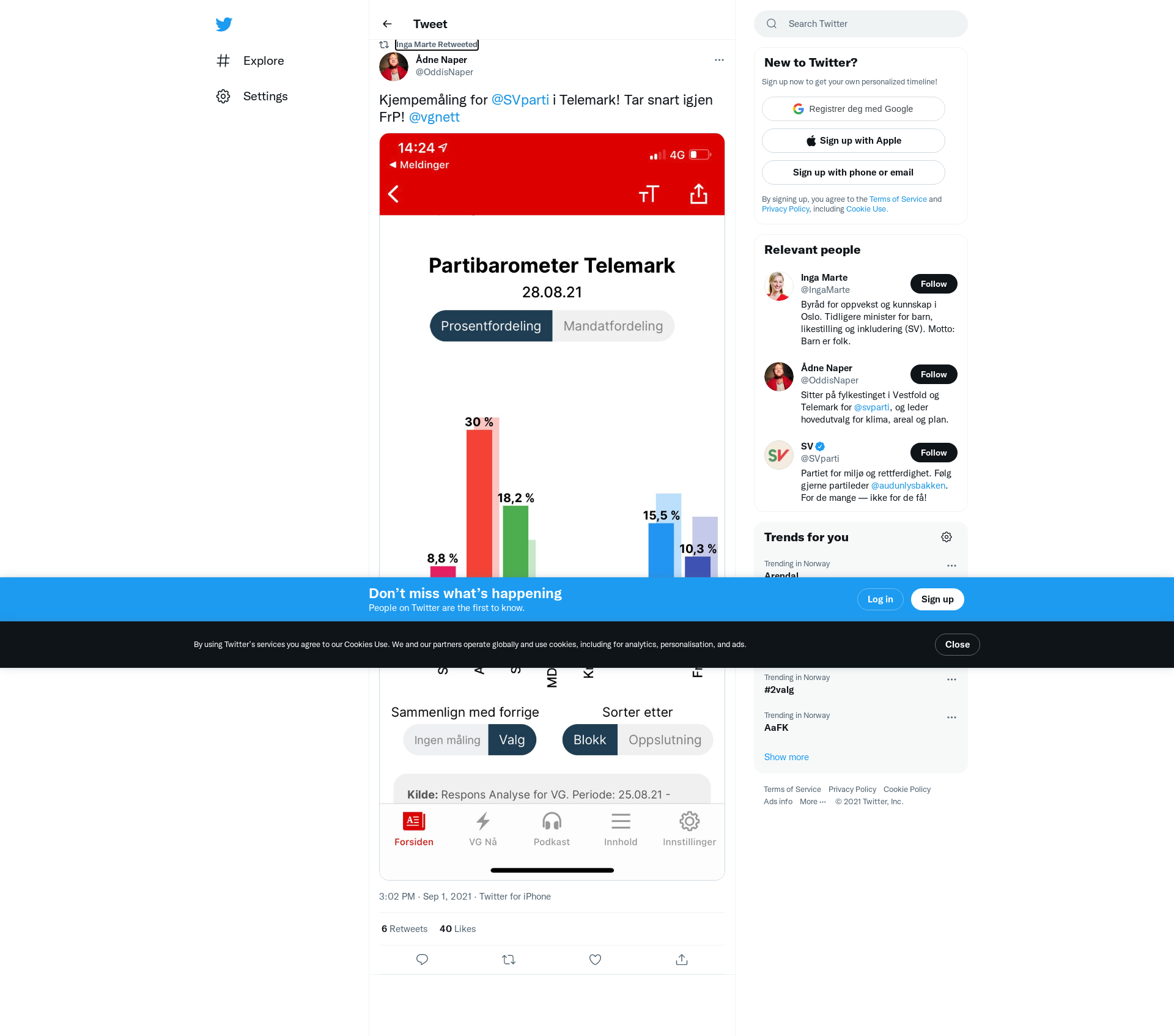 RT @OddisNaper: Kjempemåling for @SVparti i Telemark! Tar snart igjen FrP! @vgnett https://t.co/Q1dm0CMktY